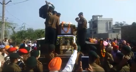 ਫ਼ਾਜ਼ਿਲਕਾ : ਦੇਸ਼ ਦੀ ਰੱਖਿਆ ਕਰਦਿਆਂ ਅਾਸਾਮ ਵਿਚ ਅੱਤਵਾਦੀਆਂ ਦੀ ਗੋਲੀ ਦਾ ਸ਼ਿਕਾਰ ਹੋ ਕੇ ਸ਼ਹਾਦਤ ਪਾਉਣ ਵਾਲੇ ਫ਼ਾਜ਼ਿਲਕਾ ਦੇ ਭਾਰਤੀ ਫ਼ੌਜ ਦੇ ਜਵਾਨ ਨੂੰ ਅੱਜ ਸਰਕਾਰੀ ਸਨਮਾਨਾਂ ਨਾਲ ਉਨ੍ਹਾਂ ਦੇ ਜੱਦੀ ਪਿੰਡ ਜੋੜਕੀ ਅੰਧੇਵਾਲੀ ਵਿਚ ਨਮ ਅੱਖਾਂ ਨਾਲ ਅੰਤਿਮ ਵਿਦਾਈ ਦਿੱਤੀ ਗਈ। ਇਸ ਮੌਕੇ ਭਾਰਤੀ ਫ਼ੌਜ ਦੇ ਅਧਿਕਾਰੀਆਂ ਅਤੇ ਫ਼ੌਜ ਦੀ ਟੁਕੜੀ ਵੱਲੋਂ ਸ਼ਹੀਦ ਨੂੰ ਸਲਾਮੀ ਦਿੱਤੀ ਗਈ।