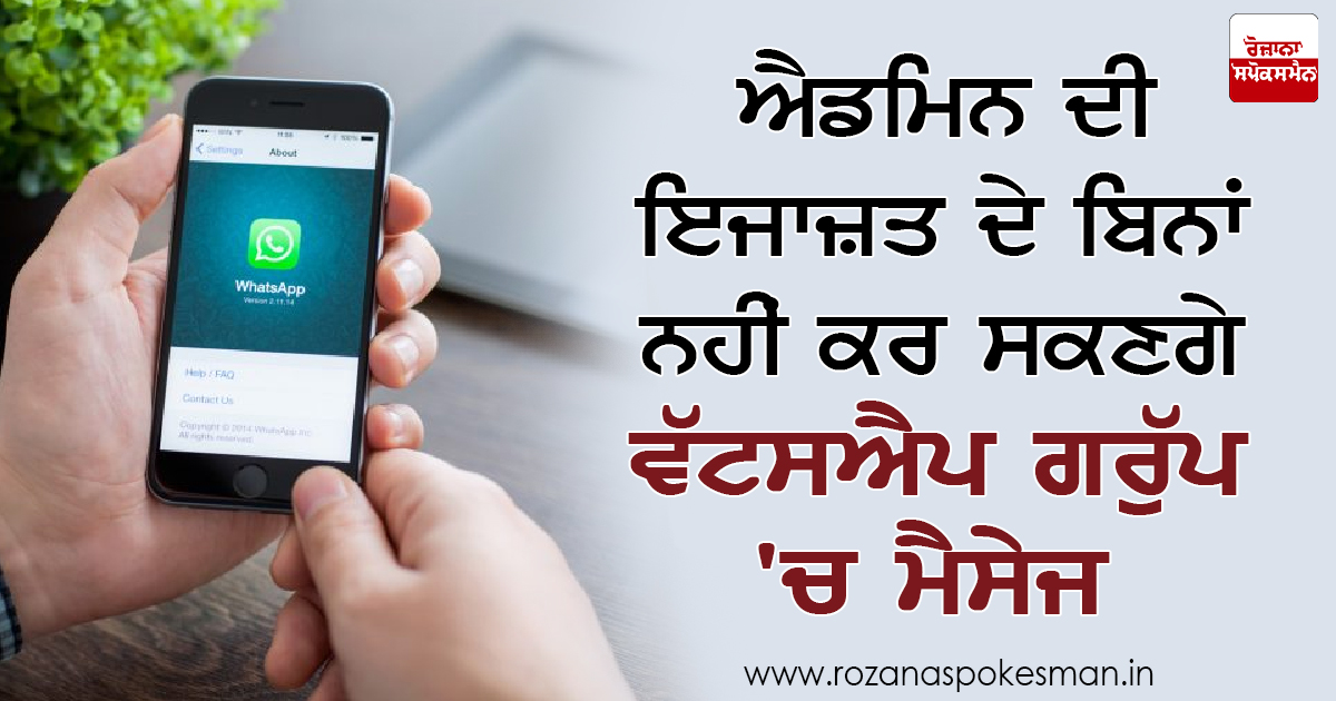 ਵੱਟਸਐਪ ਆਪਣੇ ਗਰੁੱਪ ਐਡਮਿਨੀਸਟਰੇਟਰ ਨੂੰ ਹੋਰ ਅਧਿਕਾਰ ਦੇਣ ਵਾਲਾ ਹੈ। ਇਸ ਵਿੱਚ ਜੇਕਰ ਐਡਮਿਨ ਚਾਹੇ ਤਾਂ ਉਹ ਗਰੁੱਪ ਦੇ ਮੈਬਰਾਂ ਨੂੰ ਗਰੁੱਪ ਵਿੱਚ ਸੁਨੇਹਾ, ਫੋਟੋ, ਵੀਡੀਓ, ਜੀਆਈਐੱਫ, ਦਸਤਾਵੇਜ਼ ਅਤੇ ਵਾਇਸ ਮੈਸੇਜਿਸ ਪੋਸਟ ਕਰਨ ਤੋਂ ਰੋਕ ਸਕਦਾ ਹੈ।