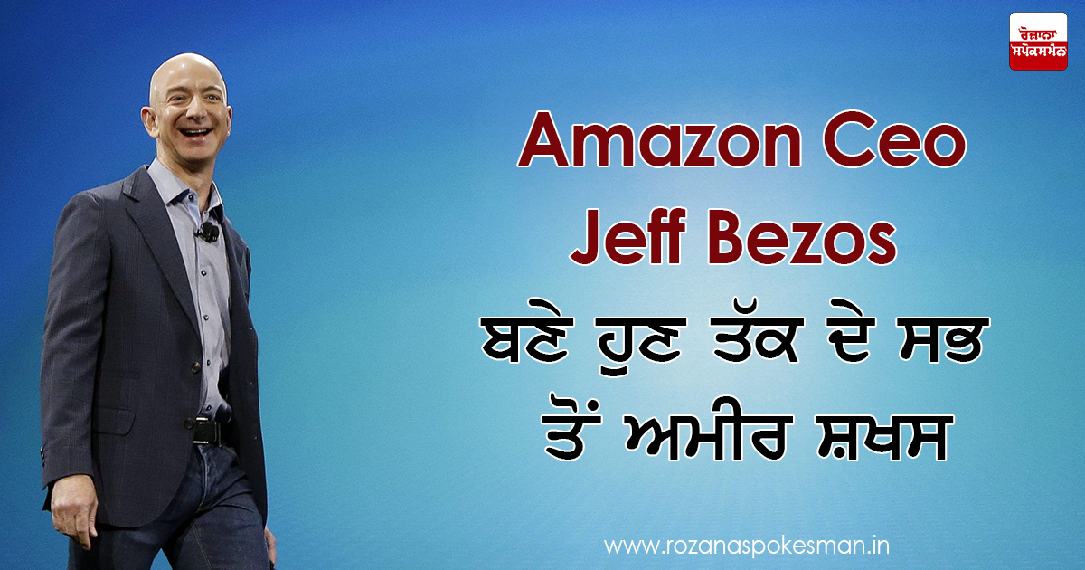 ਐਮਾਜ਼ੋਨ ਦੇ ਸੀਈਓ ਜੈਫ ਬੇਜ਼ੋਸ ਦੁਨੀਆ ਦੇ ਸਭ ਤੋਂ ਅਮੀਰ ਸ਼ਖਸ ਦੇ ਨਾਲ-ਨਾਲ ਹੁਣ ਤੱਕ ਦੇ ਸਭ ਤੋਂ ਅਮੀਰ ਵਿਅਕਤੀ ਬਣ ਗਏ ਹਨ। ਬੇਜ਼ੋਸ ਨੇ ਬਿਲ ਗੇਟਸ ਨੂੰ ਪਿੱਛੇ ਛੱਡ ਇਹ ਉਪਲਬਧੀ ਆਪਣੇ ਨਾਮ ਕੀਤੀ ਹੈ। ਉਨ੍ਹਾਂ ਦੀ ਕੁੱਲ ਜਾਇਦਾਦ 105 ਬਿਲੀਅਨ ਡਾਲਰ ਭਾਵ 66000 ਕਰੋੜ ਹੋ ਗਈ ਹੈ।