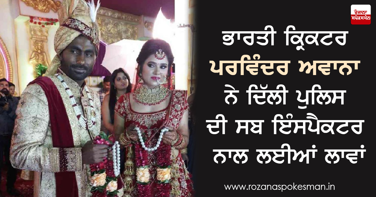 ਨਵੀਂ ਦਿੱਲੀ : ਭਾਰਤੀ ਟੀਮ ਲਈ ਅੰਤਰਰਾਸ਼ਟਰੀ ਕ੍ਰਿਕਟ ਖੇਡ ਚੁੱਕੇ ਤੇਜ਼ ਗੇਂਦਬਾਜ਼ ਪਰਵਿੰਦਰ ਅਵਾਨਾ ਮੰਗਲਵਾਰ ਨੂੰ ਵਿਆਹ ਦੇ ਬੰਧਨ 'ਚ ਬੱਝ ਗਏ ਹੈ। ਉਨ੍ਹਾਂ ਦਾ ਵਿਆਹ ਦਿੱਲੀ ਪੁਲਿਸ ਦੀ ਸਭ ਇੰਸਪੈਕਟਰ ਸੰਗੀਤਾ ਕਸਾਨਾ ਨਾਲ ਹੋਇਆ। ਮੂਲਰੂਪ ਤੋਂ ਲੋਨੀ ਦੇ ਰਾਜੇ ਭੂਪ ਖੇੜੀ ਪਿੰਡ ਦੀ ਰਹਿਣ ਵਾਲੀ ਸੰਗੀਤਾ ਭੋਪੁਰਾ ਪਿੰਡ 'ਚ ਰਹਿੰਦੀ ਹੈ। ਇਹ ਸਮਾਰੋਹ ਸ਼ਾਮ ਨੂੰ ਲੋਨੀ 'ਚ ਨਿੱਜੀ ਪਰਿਵਾਰ 'ਚ ਹੋਇਆ।