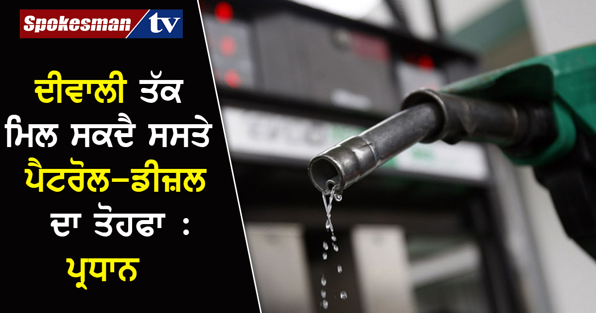 ਪੈਟਰੋਲ ਅਤੇ ਡੀਜਲ ਦੀ ਵਧੀ ਕੀਮਤਾਂ ਤੋਂ ਆਮ ਆਦਮੀ ਨੂੰ ਛੇਤੀ ਰਾਹਤ ਮਿਲ ਸਕਦੀ ਹੈ। ਪੈਟਰੋਲੀਅਮ ਅਤੇ ਕੁਦਰਤੀ ਗੈਸ ਮੰਤਰੀ ਧਰਮਿੰਦਰ ਪ੍ਰਧਾਨ ਨੇ ਮੰਗਲਵਾਰ ਨੂੰ ਕਿਹਾ ਕਿ ਪੈਟਰੋਲ, ਡੀਜਲ ਦੇ ਮੁੱਲ ਅਗਲੇ ਮਹੀਨੇ ਦੀਵਾਲੀ ਤੱਕ ਹੇਠਾਂ ਆ ਸਕਦੇ ਹਨ।