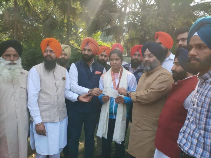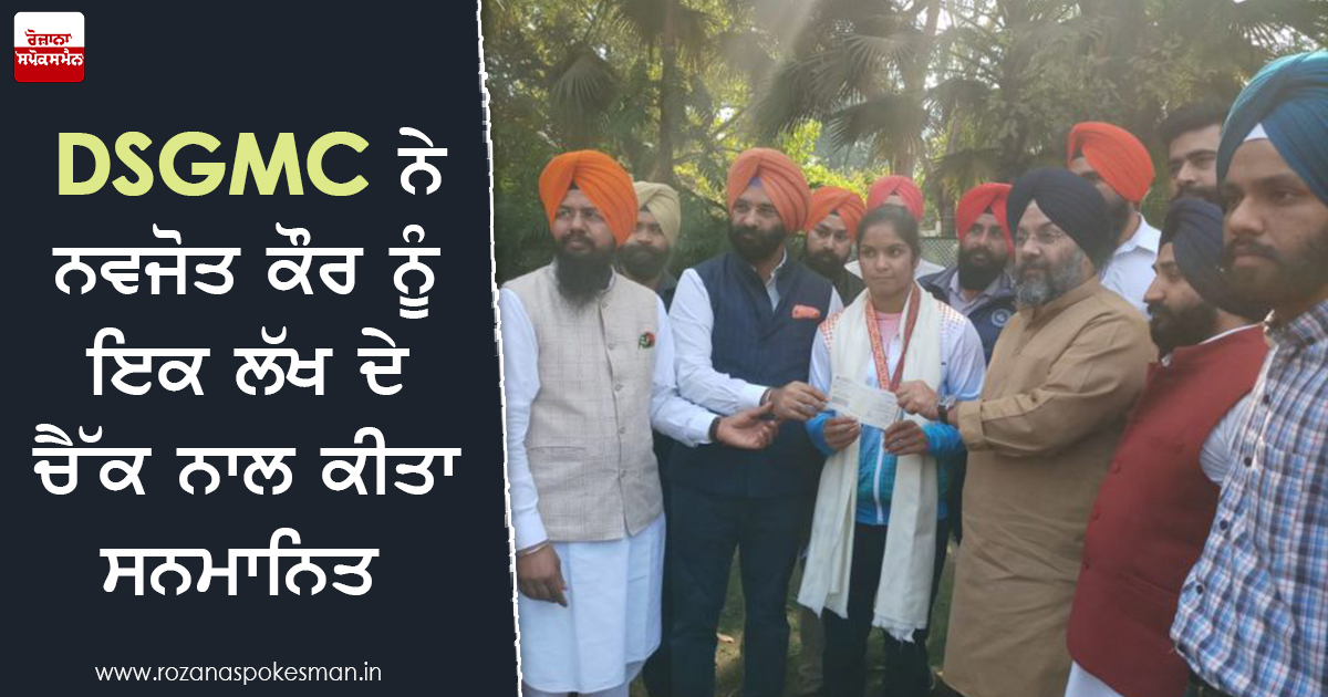 ਨਵੀਂ ਦਿੱਲੀ: ਏਸ਼ੀਅਨ ਰੈਸਲਿੰਗ ਚੈਂਪੀਅਨਸ਼ਿਪ ਵਿੱਚ ਸੋਨ ਤਗ਼ਮਾ ਜਿੱਤਣ ਵਾਲੀ ਨਵਜੋਤ ਕੌਰ ਨੂੰ ਦਿੱਲੀ ਸਿੱਖ ਗੁਰਦੁਆਰਾ ਪ੍ਰਬੰਧਕ ਕਮੇਟੀ ਨੇ ਇਕ ਲੱਖ ਰੁਪਏ ਦੇ ਚੈੱਕ ਨਾਲ ਸਨਮਾਨਿਤ ਕੀਤਾ। ਦਿੱਲੀ ਸਿੱਖ ਗੁਰਦੁਆਰਾ ਪ੍ਰਬੰਧਕ ਕਮੇਟੀ ਦੇ ਪ੍ਰਧਾਨ ਸ੍ਰੀ ਮਨਜੀਤ ਸਿੰਘ ਜੀ. ਕੇ. ਤੇ ਜਨਰਲ ਸਕੱਤਰ ਸ੍ਰੀ ਮਨਜਿੰਦਰ ਸਿੰਘ ਸਿਰਸਾ ਤੇ ਹੋਰ ਮੈਂਬਰਾਂ ਵੱਲੋਂ ਉਸਦਾ ਸਨਮਾਨ ਕੀਤਾ ਗਿਆ। ਇਸ ਮੌਕੇ ਉਸਦੇ ਪਿਤਾ ਸ੍ਰ ਸੁਖਚੈਨ ਸਿੰਘ ਤੇ ਭੈਣਨਵਜੀਤ ਕੌਰ ਵੀ ਹਾਜ਼ਰ ਸਨ।