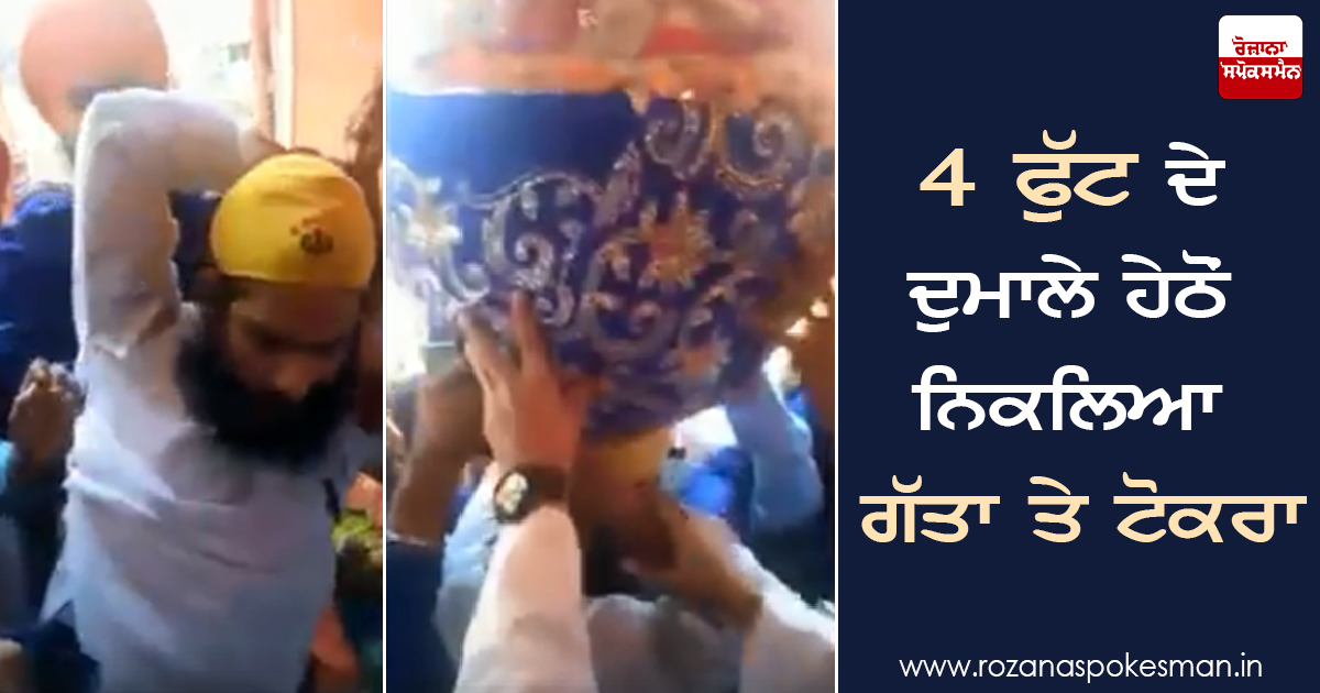 ਇਸ ਪਾਖੰਡੀ ਦੇ ਸਿਰ ਤੇ ਟੋਕਰੀ ਰੱਖੀ ਹੋਈ ਸੀ ਅਤੇ ਉਸ ਉੱਤੇ ਗੱਤੇ ਦੇ ਡੱਬੇ ਲਗਾ ਕੇ ਨਕਲੀ ਦੁਮਾਲਾ ਬਣਾਇਆ ਹੋਇਆ ਸੀ। ਸੰਗਤ ਨੇ ਇਸ ਪਾਖੰਡੀ ਦੀ ਦੁਕਾਨ ਚੁਕਾ ਦਿੱਤੀ ਅਤੇ ਇਹ ਵੀਡੀਓ ਸ਼ੋਸਲ ਮੀਡੀਆ ਤੇ ਖੂਬ ਵਾਇਰਲ ਹੋ ਰਿਹਾ ਹੈ।