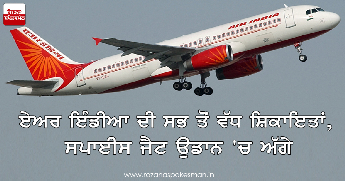 ਨਵੀਂ ਦਿੱਲੀ- ਭਾਰਤ ਦੀ ਸਰਕਾਰੀ ਜਹਾਜ਼ ਸੇਵਾ ਕੰਪਨੀ ਏਅਰ ਇੰਡੀਆ ਦਾ ਕੰਮ ਯਾਤਰੀਆਂ ਦੀਆਂ ਸ਼ਿਕਾਇਤਾਂ ਦੇ ਪੱਖ ਤੋਂ ਨਵੰਬਰ ਵਿੱਚ ਸਭ ਤੋਂ ਖਰਾਬ ਰਿਹਾ ਹੈ। ਸਮੇਂ ਸਿਰ ਉਡਾਣ ਭਰਨ (ਓ ਟੀ ਪੀ) ਦੇ ਮਾਮਲੇ ਵਿੱਚ ਏਅਰ ਇੰਡੀਆ ਤੀਸਰੇ ਸਥਾਨ ‘ਤੇ ਰਹੀ, ਜਦੋਂ ਕਿ ਸਸਤੀ ਜਹਾਜ਼ ਸੇਵਾ ਕੰਪਨੀ ਸਪਾਈਸ ਜੈਟ ਇਸ ਮਾਮਲੇ ‘ਚ ਸਾਰੀਆਂ ਏਅਰਲਾਈਨਾਂ ਤੋਂ ਅੱਗੇ ਰਹੀ ਹੈ।