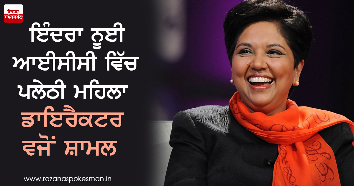 ਪੈਪਸੀਕੋ ਕੰਪਨੀ ਦੀ ਚੇਅਰਮੈਨ ਇੰਦਰਾ ਨੂਈ ਨੂੰ ਕੌਮਾਂਤਰੀ ਕ੍ਰਿਕਟ ਕੌਂਸਲ (ਆਈਸੀਸੀ) ਦੀ ਆਜ਼ਾਦ ਤੌਰ ਉੱਤੇ ਪਲੇਠੀ ਮਹਿਲਾ ਡਾਇਰੈਕਟਰ ਵਜੋਂ ਨਾਮਜ਼ਦ ਕੀਤਾ ਗਿਆ ਹੈ। ਨੂਈ, ਕ੍ਰਿਕਟ ਦੀ ਖੇਡ ਨੂੰ ਕੰਟਰੋਲ ਕਰਦੀ ਇਸ ਆਲਮੀ ਸੰਸਥਾ ਦੇ ਬੋਰਡ ਦਾ ਹਿੱਸਾ ਜੂਨ ਮਹੀਨੇ ਤੋਂ ਬਣੇਗੀ। ਨੂਈ ਦੀ ਨਿਯੁਕਤੀ ਦਾ ਫੈਸਲਾ ਸਰਬਸੰਮਤੀ ਨਾਲ ਲਿਆ ਗਿਆ ਹੈ।
