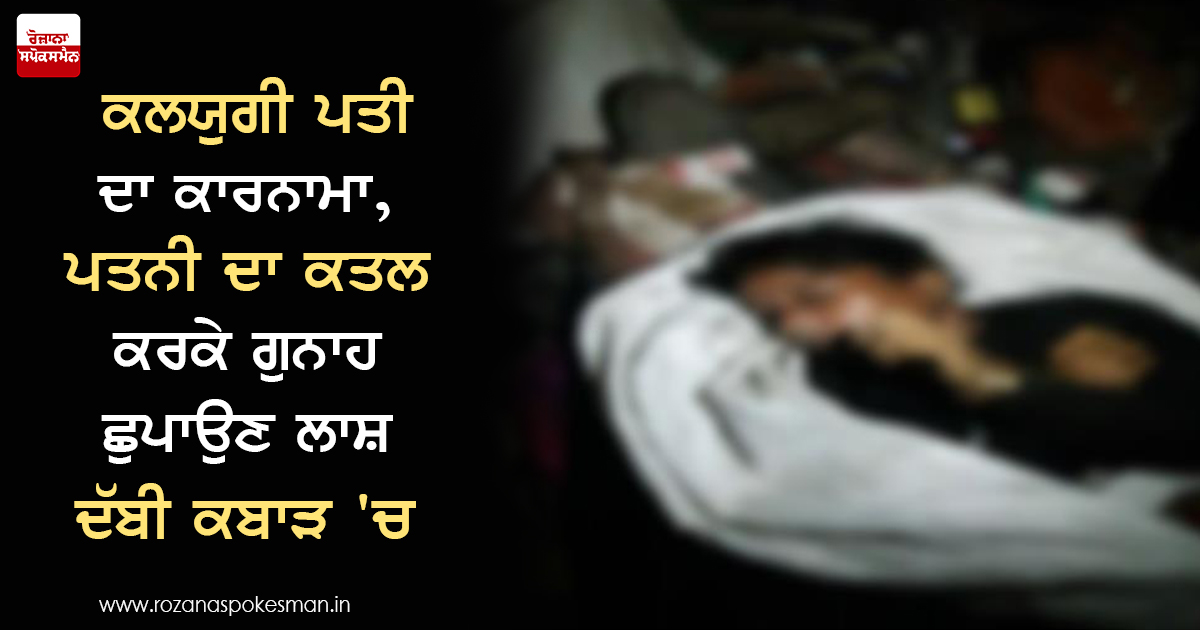 ਕਲਯੁਗੀ ਪਤੀ ਨੇ ਪਤੀ-ਪਤਨੀ ਦੇ ਵਿਸ਼ਵਾਸ ਦੇ ਰਿਸ਼ਤੇ ਨੂੰ ਤਾਰ-ਤਾਰ ਕਰਦਿਆਂ ਮਾਮੂਲੀ ਜਿਹੇ ਝਗੜੇ ਪਿਛੋਂ ਆਪਣੀ ਪਤਨੀ ਦਾ ਗਲਾ ਘੁੱਟ ਕੇ ਬੇਰਹਿਮੀ ਨਾਲ ਉਸ ਦਾ ਕਤਲ ਕਰ ਦਿੱਤਾ। ਇੰਨਾ ਹੀ ਨਹੀਂ ਆਪਣਾ ਗੁਨਾਹ ਛੁਪਾਉਣ ਲਈ ਪਤਨੀ ਦੀ ਲਾਸ਼ ਬੋਰੀ 'ਚ ਪਾ ਕੇ ਕਬਾੜ ਦੇ ਸਮਾਨ ਹੇਠ ਦੱਬ ਦਿੱਤੀ ਤੇ ਪਤਨੀ ਦੇ ਘਰੋਂ ਭੱਜ ਜਾਣ ਦਾ ਡਰਾਮਾ ਰਚ ਦਿੱਤਾ।