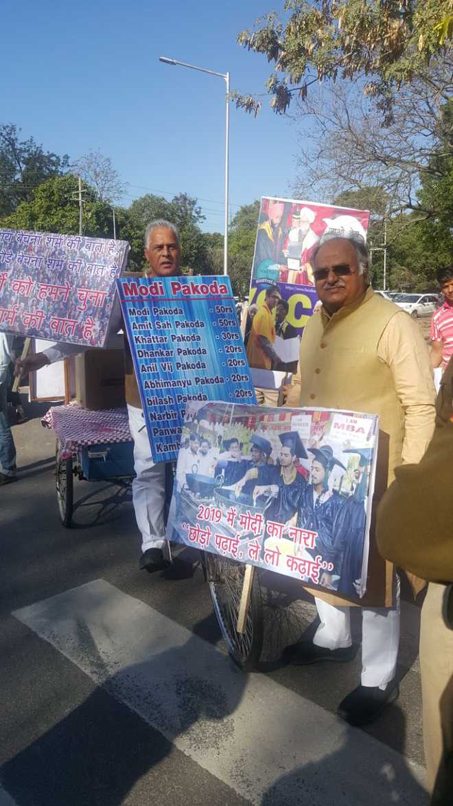ਦਰਅਸਲ ਪ੍ਰਧਾਨ ਮੰਤਰੀ ਨਰਿੰਦਰ ਮੋਦੀ ਨੇ ਕਿਹਾ ਸੀ ਕਿ ਪਕੌੜੇ ਵੇਚਣਾ ਵੀ ਰੁਜ਼ਗਾਰ ਹੈ ਤੇ ਇਸ ਤੋਂ ਬਾਅਦ ਹੀ ਕਾਂਗਰਸ ਨੇ ਦੇਸ਼ ਭਰ ‘ਚ ਮੋਦੀ ਸਰਕਾਰ ਖ਼ਿਲਾਫ ਪਕੌੜਾ ਪ੍ਰਦਰਸ਼ਨ ਕੀਤੇ ਸਨ। ਉਸੇ ਦਾ ਹੀ ਅਸਰ ਹੈ ਕਿ ਹਰਿਆਣਾ ਕਾਂਗਰਸ ਨੇ ਵਿਧਾਨ ਸਭਾ ਸਾਹਮਣੇ ਪ੍ਰਦਰਸ਼ਨ ਕੀਤਾ ਹੈ।
