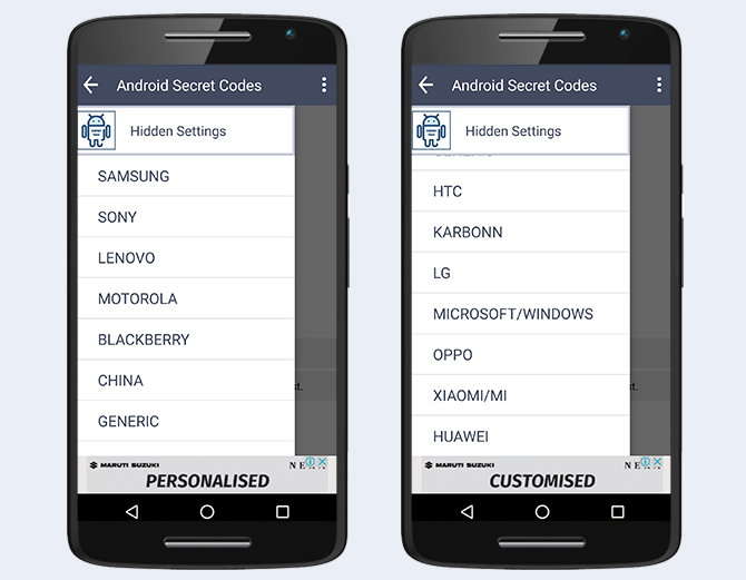 ਇਸ ਐਪ ਵਿੱਚ Samsung , LG, HTC , ਮੋਟੋ, ਸ਼ਿਆਓਮੀ, HUAWEI, ਅੋਪੋ ਸਮੇਤ ਕਈ ਕੰਪਨੀਆਂ ਦੇ ਸਮਾਰਟਫੋਨ ਦੇ ਸੀਕਰੇਟ ਅਤੇ ਹਿਡਨ ਕੋਡ ਨੂੰ ਲਿਸਟਿਡ ਕੀਤਾ ਗਿਆ ਹੈ ।