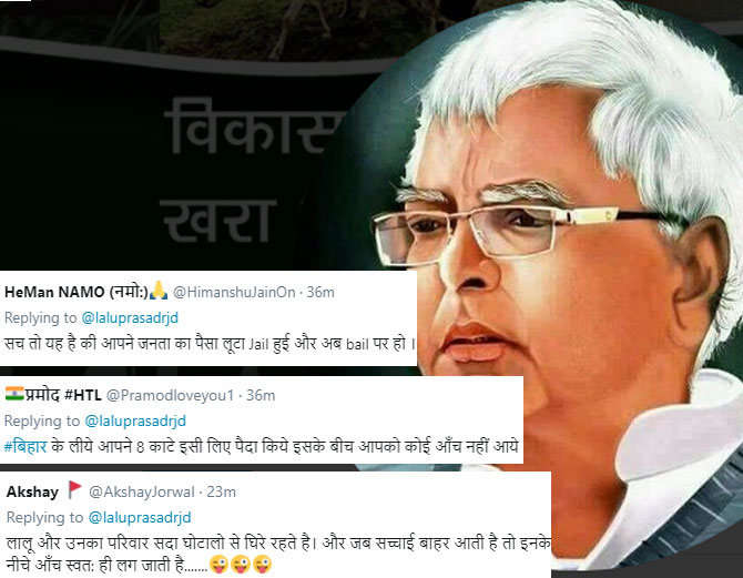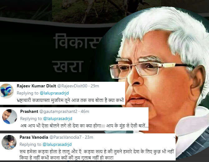 ਲਾਲੂ ਦੇ ਇਸ ਟਵੀਟ ਉੱਤੇ ਉਨ੍ਹਾਂ ਨੂੰ ਆਪਣੇ ਸਮਰਥਕਾਂ ਵਲੋਂ ਸਪੋਰਟ ਮਿਲਿਆ ਹੈ। ਲਾਲੂ ਦੇ ਸਪੋਰਟ ਵਿੱਚ ਕੁਝ ਲੋਕਾਂ ਨੇ ਪ੍ਰਧਾਨਮੰਤਰੀ ਨਰਿੰਦਰ ਮੋਦੀ ਦੇ ਖਿਲਾਫ ਗੱਲਾਂ ਲਿਖੀਆਂ ਹਨ ਤਾਂ ਕੁੱਝ ਲੋਕਾਂ ਨੇ ਵਿਆਪਮ, ਸਿਰਜਣ ਅਤੇ ਨੋਟਬੰਦੀ ਦੀ ਯਾਦ ਦਵਾਈ ਹੈ। ਉਥੇ ਹੀ ਅਜਿਹੇ ਲੋਕਾਂ ਦੀ ਗਿਣਤੀ ਵੀ ਬਹੁਤ ਹੈ ਜਿਨ੍ਹਾਂ ਨੇ ਲਾਲੂ ਦੇ ਟਵੀਟ ਉੱਤੇ ਕੜੇ ਕੰਮੈਂਟਸ ਕੀਤੇ ਹਨ। ਕੁਝ ਲੋਕਾਂ ਨੇ ਲਾਲੂ ਨੂੰ ਚਾਰਾ ਘੋਟਾਲੇ ਦੀ ਯਾਦ ਦਵਾਈ ਹੈ ਤੇ ਕਿਸੇ ਨੇ ਉਨ੍ਹਾਂ ਨੂੰ ਪਰਿਵਾਰ ਸਹਿਤ ਜੇਲ੍ਹ ਜਾਣ ਦੀ ਨਸੀਹਤ ਦਿੱਤੀ ਹੈ।