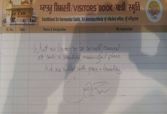ਟਰੂਡੋ ਨੇ ਸ੍ਰੀ ਹਰਿਮੰਦਰ ਸਾਹਿਬ ਕੜਾਹ ਪ੍ਰਸ਼ਾਦ ਦੀ ਦੇਗ ਕਰਵਾਈ ਤੇ ਦਰਸ਼ਨੀ ਡਿਊੜੀ ਰਾਹੀਂ ਮੱਥਾ ਟੇਕਣ ਲਈ ਪਰਿਵਾਰ ਸਮੇਤ ਪੁੱਜੇ। ਸ੍ਰੀ ਹਰਿਮੰਦਰ ਸਾਹਿਬ ਦੇ ਹੈੱਡ ਗ੍ਰੰਥੀ ਗਿਆਨੀ ਜਗਤਾਰ ਸਿੰਘ ਨੇ ਟਰੂਡੋ ਪਰਿਵਾਰ ਨੂੰ ਸਿਰੋਪਾ ਭੇਟ ਕੀਤਾ। ਟਰੂਡੋ ਨੇ 10 ਮਿੰਟ ਲੰਗਰ ਪਕਾਉਣ ਦੀ ਸੇਵਾ ਵੀ ਕੀਤੀ।