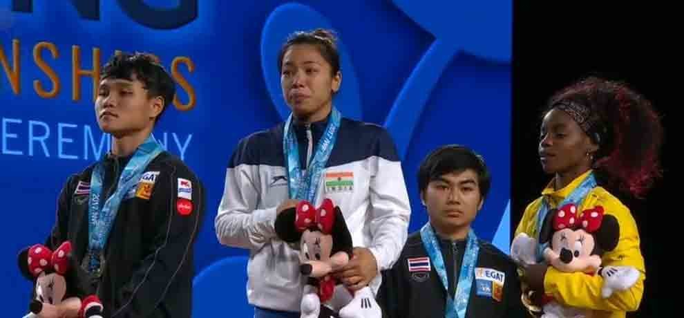 ਸੈਖੋਮ ਮੀਰਾਬਾਈ ਚਾਨੂ ਨੇ ਵਰਲਡ ਵੈਟਲਿਫਟਿੰਗ ਚੈਂਪੀਅਨਸ਼ਿਪ ਵਿੱਚ ਰਿਕਾਰਡ 194 ਕਿੱਲੋਗ੍ਰਾਮ ( 85 ਕਿੱਲੋ ਸਨੈਚ ਅਤੇ 109 ਕਿੱਲੋ ਕਲੀਨ ਐਂਡ ਜਰਕ ) ਦਾ ਭਾਰ ਚੁੱਕਦੇ ਹੋਏ ਗੋਲਡ ਮੈਡਲ ਹਾਸਿਲ ਕੀਤਾ। ਇਹ ਉਪਲਬਧੀ ਹਾਸਲ ਕਰਨ ਵਾਲੀ ਉਹ ਦੂਜੀ ਭਾਰਤੀ ਵੈਟਲਿਫਟਰ ਹੈ। 22 ਸਾਲ ਪਹਿਲਾਂ ਕਰਣਮ ਮੱਲੇਸ਼ਵਰੀ ਭਾਰਤ ਦੀ ਪਹਿਲੀ ਵਰਲਡ ਚੈਂਪੀਅਨ ਬਣੀ ਸੀ।