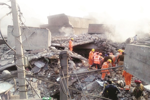 ਕਰਮੀਆਂ ਦੀ ਹਾਲੇ ਤਕ ਪਛਾਣ ਨਹੀਂ ਹੋ ਸਕੀ ਸੀ ਜਿਸ ਸਮੇਂ ਅੱਗ ਲੱਗੀ ਉਸ ਸਮੇਂ ਫ਼ੈਕਟਰੀ ਅੰਦਰ ਕੰਮ ਚਲ ਰਿਹਾ ਸੀ। ਇਸ ਤੋਂ ਪਹਿਲਾਂ ਕਿ ਫ਼ਾਇਰ ਬ੍ਰਿਗੇਡ ਦੇ ਕਰਮਚਾਰੀ ਅੱਗ 'ਤੇ ਕਾਬੂ ਪਾਉਂਦੇ ਇਮਾਰਤ ਇਕ ਧਮਾਕੇ ਨਾਲ ਡਿੱਗ ਪਈ ਅਤੇ ਵੇਖਦੇ-ਵੇਖਦੇ ਇਮਾਰਤ ਨੇ ਮਲਬੇ ਦਾ ਰੂਪ ਧਾਰਨ ਕਰ ਲਿਆ। ਦਸਿਆ ਜਾ ਰਿਹਾ ਹੈ ਕਿ ਅੱਗ ਫ਼ੈਕਟਰੀ ਦੀ ਚੌਥੀ ਮੰਜ਼ਲ 'ਤੇ ਲੱਗੀ ਜਿਸ ਨੇ ਹੌਲੀ-ਹੌਲੀ ਦੂਜੀ ਮੰਜ਼ਲ ਨੂੰ ਵੀ ਅਪਣੀ ਗ੍ਰਿਫ਼ਤ 'ਚ ਲੈ ਲਿਆ। ਮੌਕੇ 'ਤੇ ਸਬੰਧਤ (ਬਾਕੀ ਸਫ਼ਾ 11 'ਤੇ)