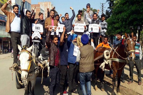 ਰੇਹੜਿਆਂ 'ਤੇ ਮੋਟਰ ਸਾਈਕਲ ਰੱਖ ਕੇ ਕਢਿਆ ਰੋਸ ਮਾਰਚ