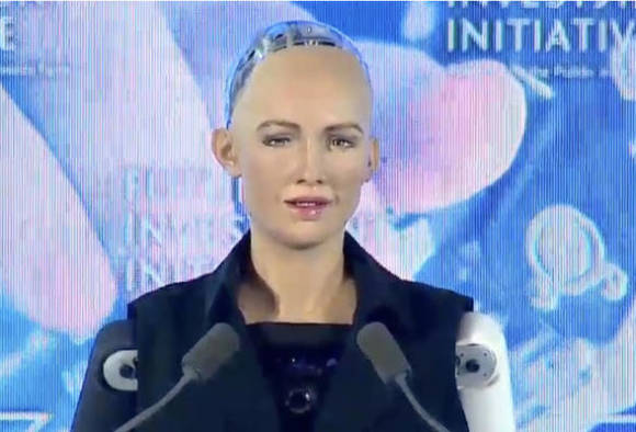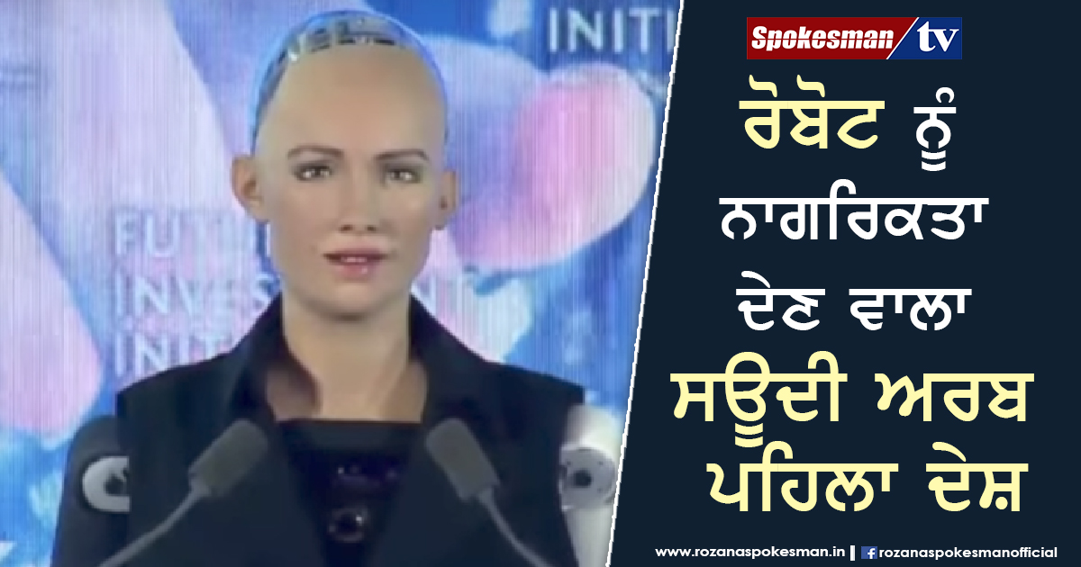 ਧਾਤੂ ਦੇ ਕੁਝ ਟੁੱਕੜਿਆਂ ਨਾਲ ਬਣੀ ਸੋਫੀਆ (ਹਿਊਮਨਾਇਡ ਆਰਟੀਫਿਸ਼ੀਅਲ ਇੰਟੈਲੀਜੈਂਸ ਰੋਬੋਟ) ਨੇ ਸਾਊਦੀ ਅਰਬ ‘ਚ 85 ਦੇਸ਼ਾਂ ਨਾਲ ਜੁੱਟੇ ਨਿਵੇਸ਼ਕਾਂ ਦੇ ਸੰਮੇਲਨ ‘ਚ ਖ਼ੁਦ ਨੂੰ ਸਾਊਦੀ ਨਾਗਰਿਕਤਾ ਮਿਲਣ ਦਾ ਐਲਾਨ ਕੀਤਾ।