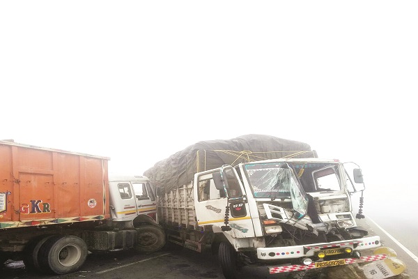 ਫ਼ਿਲੌਰ, 2 ਜਨਵਰੀ (ਰਾਜ): ਬੀਤੀ ਰਾਤ 12 ਵਜੇ ਦੇ ਕਰੀਬ ਫ਼ਿਲੌਰ ਤੋਂ ਲੁਧਿਆਣੇ ਨੂੰ ਜਾਂਦੇ ਹੋਏ ਮੁੱਖ ਸੜਕ 'ਤੇ ਸੰਘਣੀ ਧੁੰਦ ਹੋਣ ਕਾਰਨ 40-45 ਗੱਡੀਆਂ ਟਕਰਾ ਗਈਆਂ ਜਿਸ ਕਾਰਨ ਗੱਡੀਆਂ 'ਚ ਸਵਾਰ 2-3 ਵਿਅਕਤੀ ਜ਼ਖ਼ਮੀ ਹੋ ਗਏ ਜਿਨ੍ਹਾਂ ਵਿਚੋਂ ਇਕ ਦੀ ਲੱਤ ਟੁੱਟ ਗਈ।ਜ਼ਿਕਰਯੋਗ ਹੈ ਕਿ ਬੀਤੀ ਰਾਤ ਮੀਂਹ ਵਾਂਗ ਪਈ ਸੰਘਣੀ ਧੁੰਦ ਕਾਰਨ ਅਤੇ ਹੱਥ ਨੂੰ ਹੱਥ ਨਜ਼ਰ ਨਹੀਂ ਸੀ ਆ ਰਿਹਾ। ਅਜਿਹੇ ਵਿਚ ਫ਼ਿਲੌਰ ਤੋਂ ਲੁਧਿਆਣੇ ਨੂੰ ਜਾਣ ਵਾਲੇ ਪਾਸੇ ਸੜਕ 'ਤੇ ਇਕ ਟਰੱਕ ਖ਼ਰਾਬ ਹੋ ਗਿਆ। ਟਰੱਕ ਦੇ ਸੜਕ ਵਿਚਕਾਰ ਖੜੇ ਹੋਣ ਕਰ ਕੇ ਇਕ ਆਲੂਆਂ ਦੀ ਭਰੀ ਟਰਾਲੀ-ਟਰੈਕਟਰ ਆ ਵੱਜਾ। ਸੜਕ 'ਤੇ ਆਲੂ ਖਿਲਰ ਜਾਣ ਕਰ ਕੇ ਮੀਂਹ ਵਾਂਗ ਪੈ ਰਹੀ ਧੁੰਦ ਕਾਰਨ ਸੜਕ ਬੁਰੀ ਤਰ੍ਹਾਂ ਗਿੱਲੀ ਹੋ ਗਈ ਅਤੇ ਸੈਂਕੜੇ ਵਾਹਨਾਂ ਦੇ ਲੰਘਣ ਕਾਰਨ ਆਲੂਆਂ ਅਤੇ ਧੁੰਦ ਦੇ ਪਾਣੀ ਦੀ ਤਿਲਕਣ ਕਾਰਨ ਦੂਰ ਤਕ ਫਿਸਲਣ ਬਣ ਗਈ, ਅਜਿਹੀ ਹਾਲਤ ਵਿਚ ਗੱਡੀਆਂ ਵਿਚ ਗੱਡੀਆਂ ਵੱਜਦੀਆਂ ਰਹੀਆਂ।