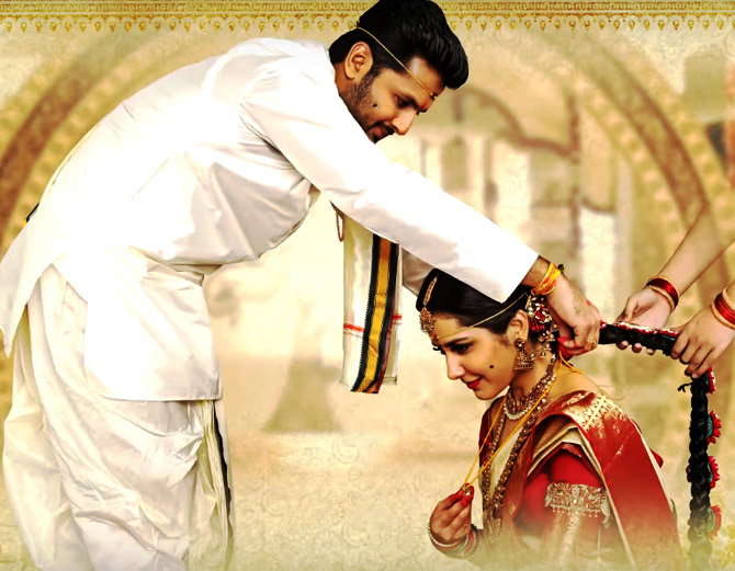 ਮੁੰਬਈ / ਹੈਦਰਾਬਾਦ: ਸਾਊਥ ਅਦਾਕਾਰਾ ਰਾਸ਼ੀ ਖੰਨਾ ਦੇ ਵਿਆਹ ਦੀਆਂ ਕੁਝ ਤਸਵੀਰਾਂ ਸਾਹਮਣੇ ਆਈਆਂ ਹਨ। ਇਹਨਾਂ 'ਚ ਉਹ ਐਕਟਰ ਨਿਤੀਨ ਦੇ ਨਾਲ ਟਰੈਡੀਸ਼ਨਲ ਦੁਲਹਨ ਦੀ ਤਰ੍ਹਾਂ ਵਿਆਹ ਦੇ ਪੰਡਾਲ 'ਚ ਬੈਠੀ ਦਿਖ ਰਹੀ ਹੈ। ਦਰਅਸਲ ਇਹ ਇਹਨਾਂ ਦੀ ਆਉਣ ਵਾਲੀ ਫਿਲਮ 'ਸ਼ਰੀਨਿਵਾਸ ਕਲਿਆਣਮ' ਦੀ ਪਹਿਲੀ ਝਲਕ ਹੈ, ਜਿਸ 'ਚ ਦੋਵੇਂ ਲਾੜਾ - ਲਾੜੀ ਦੇ ਰੂਪ 'ਚ ਨਜ਼ਰ ਆ ਰਹੇ ਹਨ।