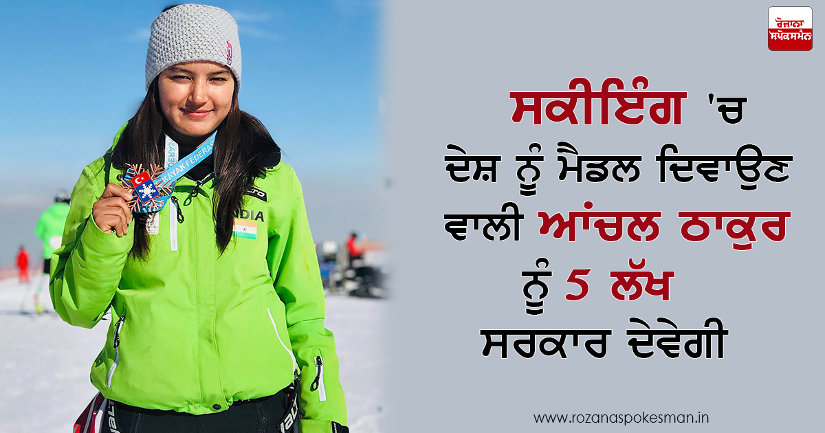 ਹਿਮਾਚਲ ਦੀ ਧੀ ਆਂਚਲ ਠਾਕੁਰ ਨੂੰ ਸੰਸਾਰ ਸਕੀਇੰਗ ਕਸ਼ਮਕਸ਼ ਵਿੱਚ ਦੇਸ਼ ਨੂੰ ਪਹਿਲਾ ਪਦਕ ਜਿੱਤਣ ਉੱਤੇ ਮੁੱਖਮੰਤਰੀ ਜੈਰਾਮ ਠਾਕੁਰ ਨੇ ਇਨਾਮ ਦੇ ਤੌਰ ਤੇ 5 ਲੱਖ ਰੁਪਏ ਦੇਣ ਦੀ ਘੋਸ਼ਣਾ ਕੀਤੀ ਹੈ। ਜ਼ਿਕਰਯੋਗ ਹੈ ਕਿ ਮਨਾਲੀ ਦੀ ਕੰਚਨ ਠਾਕੁਰ ਦੇਸ਼ ਨੂੰ ਸੀਤ ਓਲੰਪਿਕ ਵਿੱਚ ਸਕੀਇੰਗ ਵਿੱਚ ਪਦਕ ਦਿਵਾਉਣ ਵਾਲੀ ਪਹਿਲੀ ਖਿਡਾਰੀ ਬਣ ਗਈ ਹੈ ਤੁਰਕੀ ’ਚ ਕਾਂਸੀ ਤਗ਼ਮਾ ਜਿੱਤਣ ਵਾਲੀ ਆਂਚਲ ਨੂੰ ਸਭ ਪਾਸਿਓਂ ਵਧਾਈਆਂ ਮਿਲ ਰਹੀਆਂ ਹਨ।