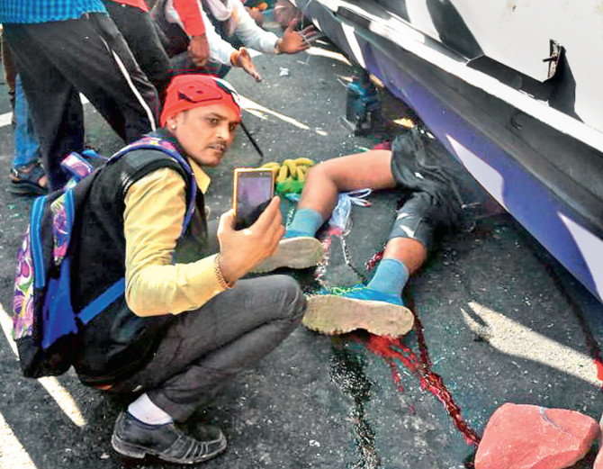 ਹਾਦਸੇ ਵਿੱਚ ਬੱਸ ਦੇ ਫੁੱਟਪਾਤ ਉੱਤੇ ਖੜੇ ਤਿੰਨੋਂ ਨੌਜਵਾਨਾਂ ਦੀ ਮੌਤ ਹੋ ਗਈ ਅਤੇ 20 ਲੋਕ ਜਖ਼ਮੀ ਹੋ ਗਏ। ਇਸ ਦੌਰਾਨ ਕੁਝ ਲੋਕ ਜਖ਼ਮੀਆਂ ਦੀ ਮਦਦ ਕਰਨ ਦੇ ਬਜਾਏ ਵੀਡੀਓ ਬਣਾਉਂਦੇ ਨਜ਼ਰ ਆਏ। ਇੱਕ ਮੁੰਡਾ ਤਾਂ ਲਾਸ਼ ਦੇ ਨਾਲ ਸੈਲਫੀ ਲੈਣ ਲੱਗਾ। ਡੀਐਸਪੀ ਅਰਜੁਨ ਸਿੰਘ ਸ਼ੇਖਾਵਤ ਨੇ ਦੱਸਿਆ ਕਿ ਐਤਵਾਰ ਦੁਪਹਿਰ 3.20 ਦੇ ਕਰੀਬ ਬਥੂਆਖੋਹ ਘਾਟੀ ਵਿੱਚ ਕਰੌਲੀ ਵੱਲੋਂ ਤੇਜ ਰਫ਼ਤਾਰ ਵਿੱਚ ਆ ਰਹੀ ਮੁਸਾਫਰਾਂ ਨਾਲ ਭਰੀ ਬੱਸ ਅਨਿਯੰਤ੍ਰਿਤ ਹੋ ਕੇ ਸੜਕ ਉੱਤੇ ਪਲਟ ਗਈ।