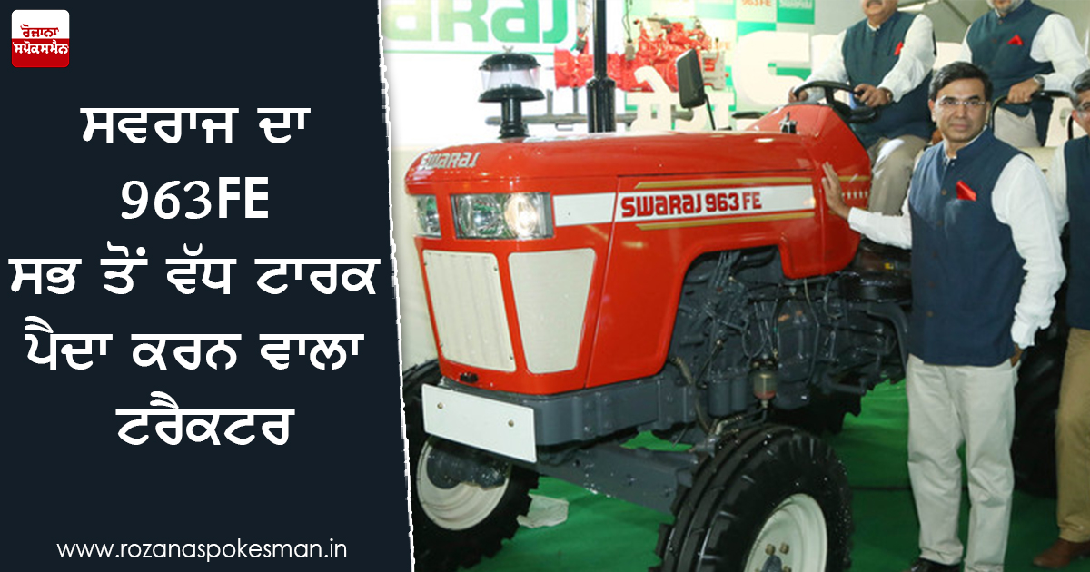 ਖੇਤੀਬਾੜੀ ਉਪਕਰਨ ਬਣਾਉਣ ਵਾਲੇ ਭਾਰਤ ਦੇ ਦੂਜੇ ਸਭ ਤੋਂ ਵੱਡੇ ਬ੍ਰਾਂਡ ਸਵਰਾਜ ਨੇ ਅੱਜ ਚੰਡੀਗੜ੍ਹ ਵਿਖੇ ਆਪਣਾ ਨਵਾਂ ਟਰੈਕਟਰ 963FE ਰਾਸ਼ਟਰੀ ਪੱਧਰ 'ਤੇ ਲਾਂਚ ਕੀਤਾ। ਸਵਰਾਜ ਮਹਿੰਦਰ ਗਰੁੱਪ ਦਾ ਹੀ ਇੱਕ ਅੰਗ ਹੈ ਅਤੇ 1974 ਤੋਂ ਲੈ ਕੇ ਹੁਣ ਤਕ 1.3 ਮਿਲੀਅਨ ਤੋਂ ਵੀ ਜਿਆਦਾ ਟਰੈਕਟਰ ਵੇਚੇ ਹਨ। ਸਵਰਾਜ ਕੰਪਨੀ ਨੇ ਕਿਸਾਨਾਂ ਲਈ ਖੇਤੀ ਨੂੰ ਹੋਰ ਆਸਾਨ ਬਣਾਉਣ ਖਾਤਿਰ ਆਪਣੇ ਨਵੇਂ ਟਰੈਕਟਰ 963FE ਨੂੰ ਬਹੁਤ ਸਾਰੀਆਂ ਸੁਵਿਧਾਵਾਂ ਨਾਲ ਲੈਸ ਕੀਤਾ ਹੈ। ਸਵਰਾਜ ਨੇ ਆਪਣੇ ਇਸ ਨਵੇਂ ਟਰੈਕਟਰ 963FE ਦੀ ਸ਼ਕਤੀ 60 ਤੋਂ 75 ਹੋਰਸ ਪਾਵਰ ਰੱਖੀ ਹੈ।ਜਿਸਦੇ ਫਲਸਰੂਪ ਇਸ ਸ਼੍ਰੇਣੀ ਵਿਚ ਬਾਕੀ ਟਰੈਕਟਰਾਂ ਦੀ ਤੁਲਨਾ ਨਾਲੋਂ 15 ਫ਼ੀਸਦੀ ਵੱਧ ਟਾਰਕ ਮਿਲਦਾ ਹੈ।