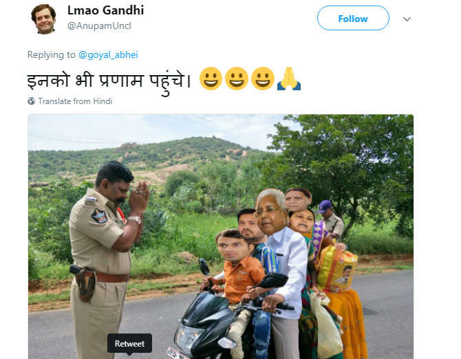 ਇੱਕ ਬਾਇਕ ਤੇ ਸਵਾਰ ਪਤੀ - ਪਤਨੀ ਅਤੇ ਪੰਜ ਬੱਚਿਆਂ ਦੀ ਇੱਕ ਤਸਵੀਰ ਸੋਸ਼ਲ ਮੀਡੀਆ ਉੱਤੇ ਤੇਜੀ ਨਾਲ ਵਾਇਰਲ ਹੋ ਰਹੀ ਹੈ, ਜਿਸ ਵਿੱਚ ਇੱਕ ਪੁਲਿਸ ਵਾਲਾ ਉਨ੍ਹਾਂ ਦੇ ਅੱਗੇ ਹੱਥ ਜੋੜਦਾ ਹੋਇਆ ਨਜ਼ਰ ਆ ਰਿਹਾ ਹੈ। ਇਸ ਫੋਟੋ ਨੂੰ ਕਰਨਾਟਕ ਕੈਡਰ ਦੇ ਆਈਪੀਐੱਸ ਅਫਸਰ ਅਭੀਸ਼ੇਕ ਗੋਇਲ ਨੇ ਟਵੀਟ ਕੀਤਾ ਸੀ। ਦੱਸਿਆ ਜਾ ਰਿਹਾ ਹੈ ਕਿ ਇਹ ਤਸਵੀਰ ਆਂਧਰਾ ਪ੍ਰਦੇਸ਼ ਦੇ ਅਨੰਤਪੁਰ ਜਿਲ੍ਹੇ ਦੀ ਹੈ।