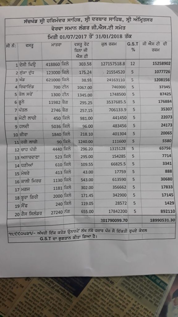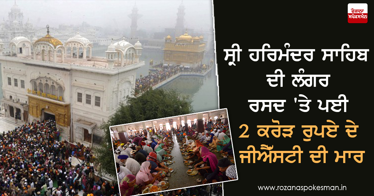 ਸ੍ਰੀ ਹਰਿਮੰਦਰ ਸਾਹਿਬ ਦੇ ਲੰਗਰ ਘਰ ਦੀ ਰਸਦ ‘ਤੇ ਭਰਨਾ ਪਿਆ 2 ਕਰੋੜ ਰੁਪਏ ਦਾ ਜੀ.ਐਸ.ਟੀ:ਸ੍ਰੀ ਹਰਿਮੰਦਰ ਸਾਹਿਬ ਦੇ ਸ੍ਰੀ ਗੁਰੂ ਰਾਮਦਾਸ ਲੰਗਰ ਘਰ ਦੀ ਰਸਦ ‘ਤੇ ਇਸ ਵਾਰ 2 ਕਰੋੜ ਰੁਪਏ ਦਾ ਜੀ.ਐਸ.ਟੀ ਭਰਨਾ ਪਿਆ ਹੈ। ਇਹ ਜੀ.ਐਸ.ਟੀ ਪਿਛਲੇ 6 ਮਹੀਨੇ ਵਿਚ ਸਿਰਫ ਗੁਰੂ ਰਾਮਦਾਸ ਲੰਗਰ ਨੂੰ ਭਰਨਾ ਪਿਆ ਹੈ।