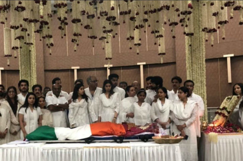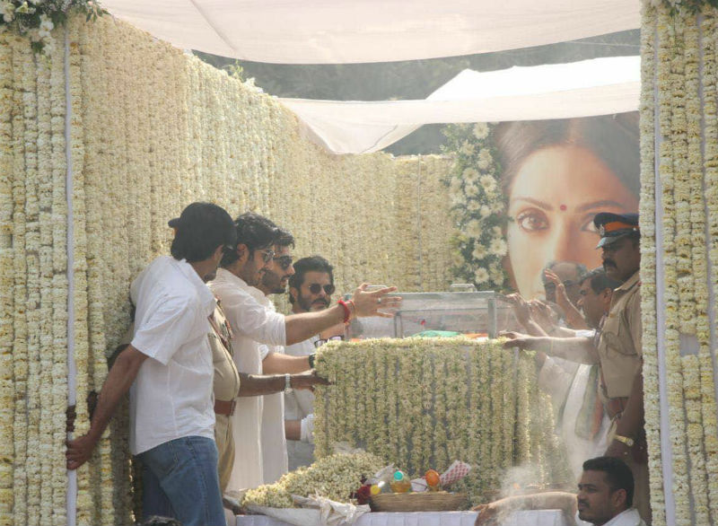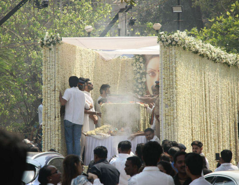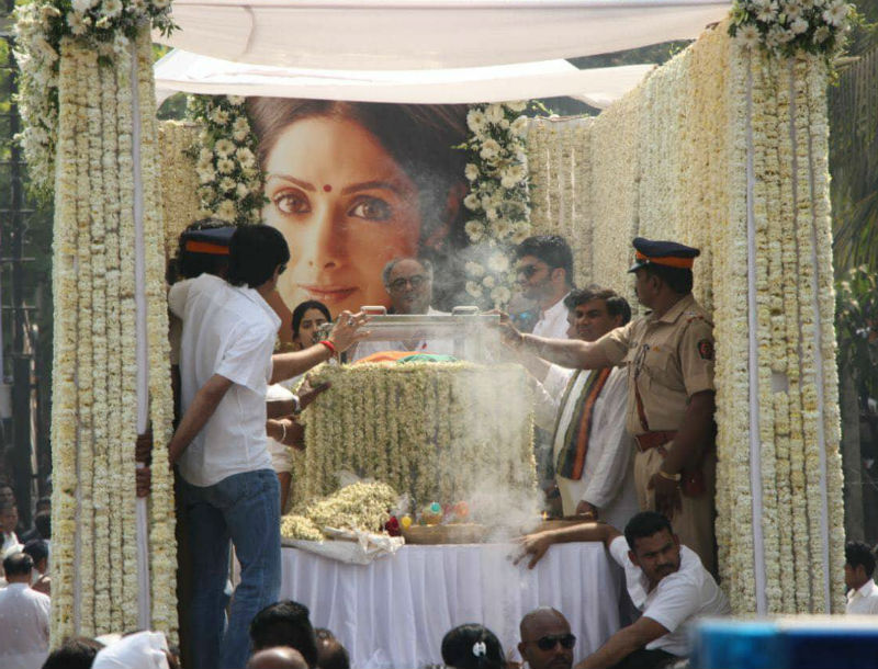 ਸ਼੍ਰੀਦੇਵੀ ਦੇ ਮ੍ਰਿਤਕ ਸਰੀਰ ਨੂੰ ਤਿਰੰਗੇ 'ਚ ਲਪੇਟਿਆ ਗਿਆ। ਉਨ੍ਹਾਂ ਦੀ ਅੰਤਿਮ ਯਾਤਰਾ 'ਚ ਬਾਲੀਵੁੱਡ ਦੀਆਂ ਕਈ ਮਸ਼ਹੂਰ ਹਸਤੀਆਂ ਸ਼ਾਮਲ ਹੋਈਆਂ।