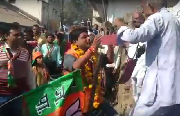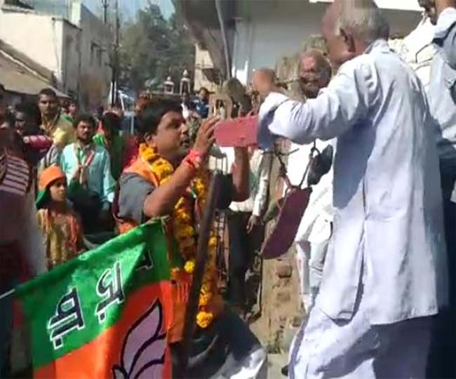 ਮੱਧਪ੍ਰਦੇਸ਼ ਦੇ ਧਾਰ ਜਿਲ੍ਹੇ ਦੇ ਧਾਮਨੋਦ ਵਿੱਚ ਚੋਣ ਲਈ ਵੋਟ ਮੰਗਣ ਨਿਕਲੇ ਉਮੀਦਵਾਰ ਨੂੰ ਲੋਕਾਂ ਨੇ ਜੁੱਤੀਆਂ ਦਾ ਹਾਰ ਪਾਇਆ। ਭਾਜਪਾ ਉਮੀਦਵਾਰ ਦਿਨੇਸ਼ ਸ਼ਰਮਾ ਨੂੰ ਜਨਸੰਪਰਕ ਦੇ ਦੌਰਾਨ ਵਾਰਡ ਕ੍ਰਮਾਂਕ 1 ਵਿੱਚ ਵਿਰੋਧ ਦਾ ਸਾਹਮਣਾ ਕਰਨਾ ਪਿਆ। ਗੁਲਝਰਾ ਦੇ ਇੱਕ ਬਜੁਰਗ ਨੇ ਪਿਛਲੀ ਪਰਿਸ਼ਦ ਦੇ ਦੌਰਾਨ ਵਿਗੜੀ ਜਲ ਵੰਡ ਵਿਵਸਥਾ ਅਤੇ ਔਰਤਾਂ ਉੱਤੇ ਕੇਸ ਦਰਜ ਕਰਾਉਣ ਨੂੰ ਲੈ ਕੇ ਨਰਾਜਗੀ ਜਾਹਿਰ ਕਰਦੇ ਹੋਏ ਸ਼ਰਮਾ ਦੇ ਗਲੇ ਵਿੱਚ ਚੱਪਲ - ਜੁੱਤੀਆਂ ਦਾ ਹਾਰ ਪਾ ਦਿੱਤਾ।