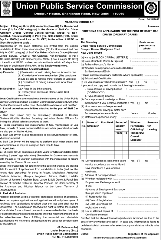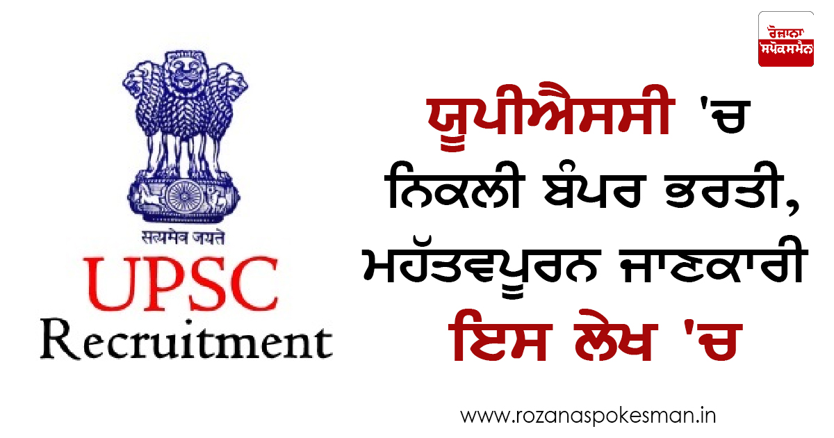 ਯੂਨੀਅਨ ਪਬਲਿਕ ਸਰਵਿਸ ਕਮੀਸ਼ਨ (UPSC) ਵਿੱਚ ਸਰਕਾਰੀ ਨੌਕਰੀ ਦਾ ਸੁਪਨਾ ਦੇਖ ਰਹੇ ਨੌਜਵਾਨਾਂ ਲਈ ਬਹੁਤ ਚੰਗੀ ਖਬਰ ਹੈ। UPSC ਵਿੱਚ ਨਿਕਲੀ ਬੰਪਰ ਭਰਤੀਆਂ। ਫ਼ਾਰਮ ਭਰਨ ਦੀ ਆਖਰੀ ਤਾਰੀਖ 4/12/2017 ਹੈ, ਜਲਦੀ ਕਰੋ ਅਤੇ ਜਲਦੀ ਤੋਂ ਜਲਦੀ ਫ਼ਾਰਮ ਭਰ ਕੇ ਯੂਪੀਐਸਸੀ ਵਿੱਚ ਸਰਕਾਰੀ ਨੌਕਰੀ ਪਾਓ। UPSC ਵਿੱਚ ਕੁਲ 414 ਪਦਾਂ ਉੱਤੇ ਭਰਤੀਆਂ ਨਿਕਲੀਆਂ ਹਨ।