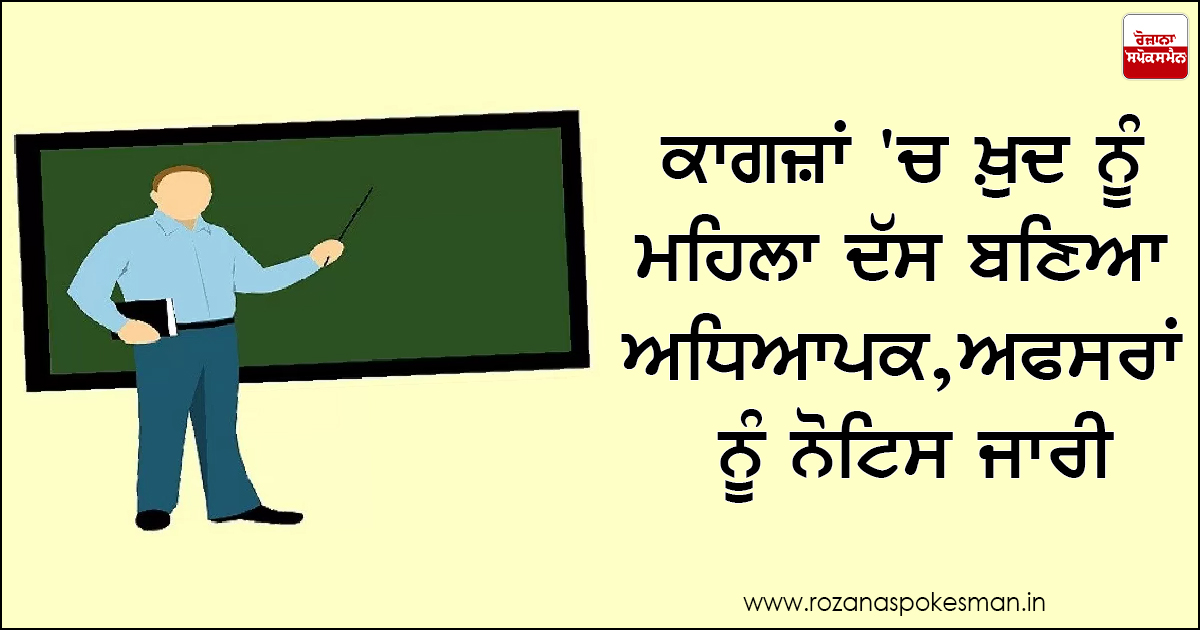 ਕਾਗਜ਼ਾਂ 'ਚ ਖ਼ੁਦ ਨੂੰ ਮਹਿਲਾ ਦੱਸ ਬਣਿਆ ਅਧਿਆਪਕ, ਅਫਸਰਾਂ ਨੂੰ ਨੋਟਿਸ ਜਾਰੀ