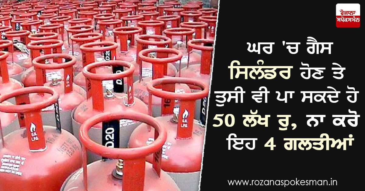 ਘਰ 'ਚ ਗੈਸ ਸਿਲੰਡਰ ਹੋਣ ਤੇ ਤੁਸੀ ਵੀ ਪਾ ਸਕਦੇ ਹੋ 50 ਲੱਖ ਰੁ, ਨਾ ਕਰੋ ਇਹ 4 ਗਲਤੀਆਂ