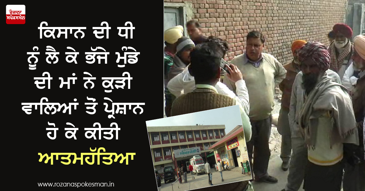 ਕਿਸਾਨ ਦੀ ਧੀ ਨੂੰ ਲੈ ਕੇ ਭੱਜੇ ਮੁੰਡੇ ਦੀ ਮਾਂ ਨੇ ਕੁੜੀ ਵਾਲਿਆਂ ਤੋਂ ਪ੍ਰੇਸ਼ਾਨ ਹੋ ਕੇ ਕੀਤੀ ਆਤਮਹੱਤਿਆ