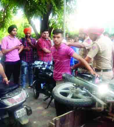ਮੋਟਰਸਾਈਕਲ ਅਤੇ ਤਿੰਨ ਨੌਜਵਾਨ ਕਾਬੂ ਕੀਤੇ ਜਿਸ ਤੋਂ ਬਾਅਦ ਹੰਗਾਮਾ ਖ਼ਤਮ ਹੋਇਆ।