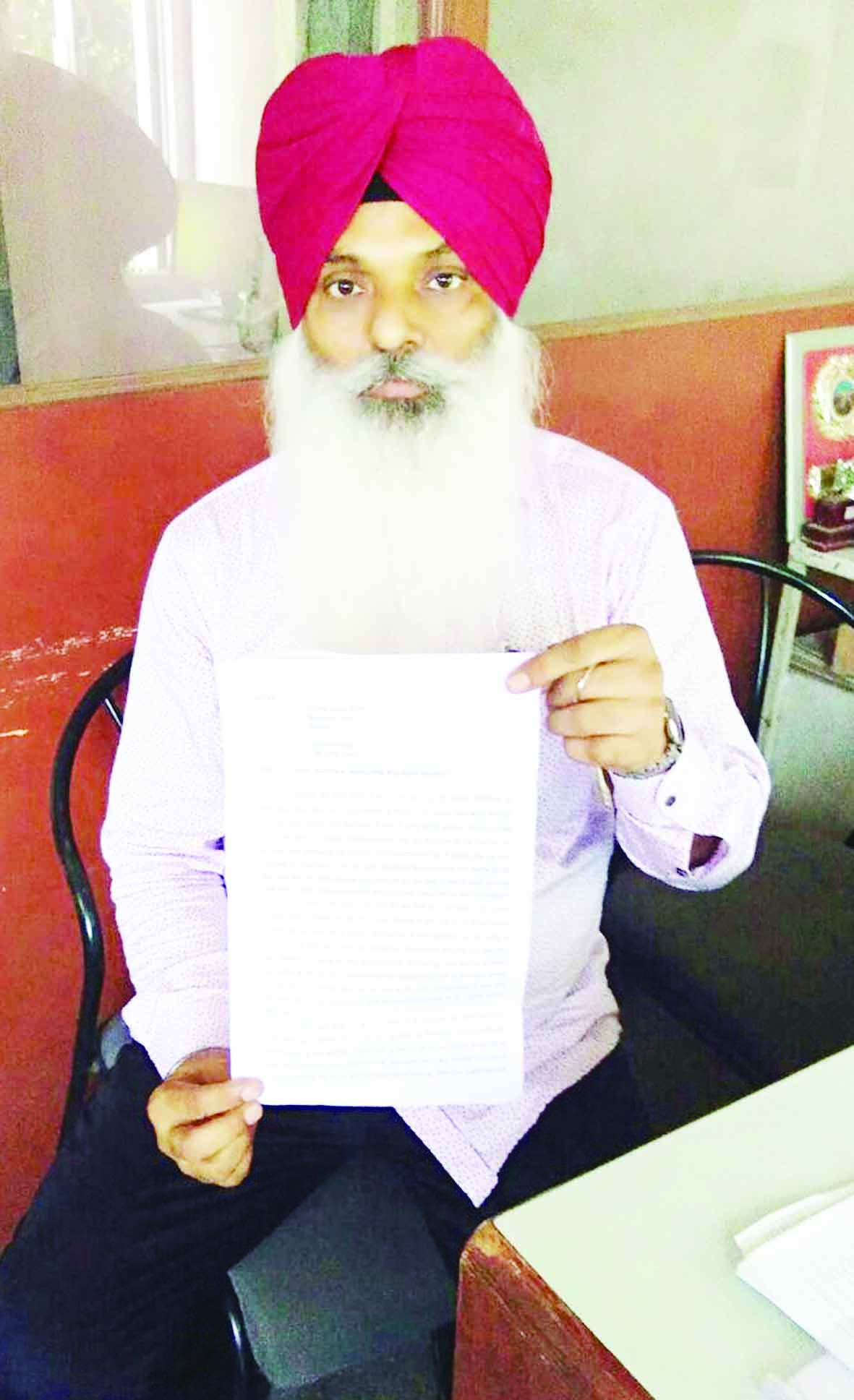 ਕੇਸਰ ਸਿੰਘ ਨੇ ਦੋਸ਼ ਲਗਾਇਆ ਹੈ ਕਿ