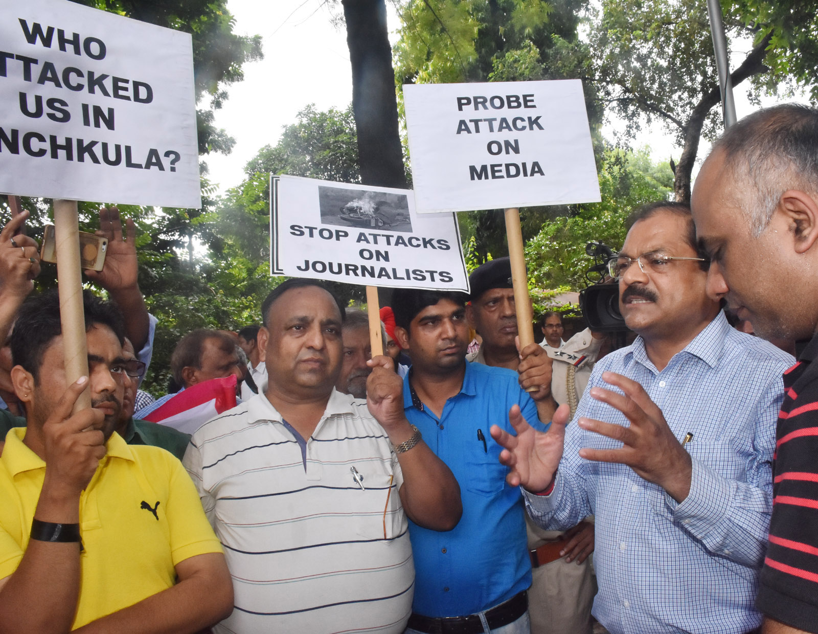 ਮੌਕੇ ਪੰਚਕੂਲਾ 'ਚ ਪੱਤਰਕਾਰਾਂ 'ਤੇ ਹੋਏ ਜਾਨਲੇਵਾ ਹਮਲੇ ਤੇ ਮੋਟਰ ਵਾਹਨਾਂ ਨੂੰ ਸਾੜੇ