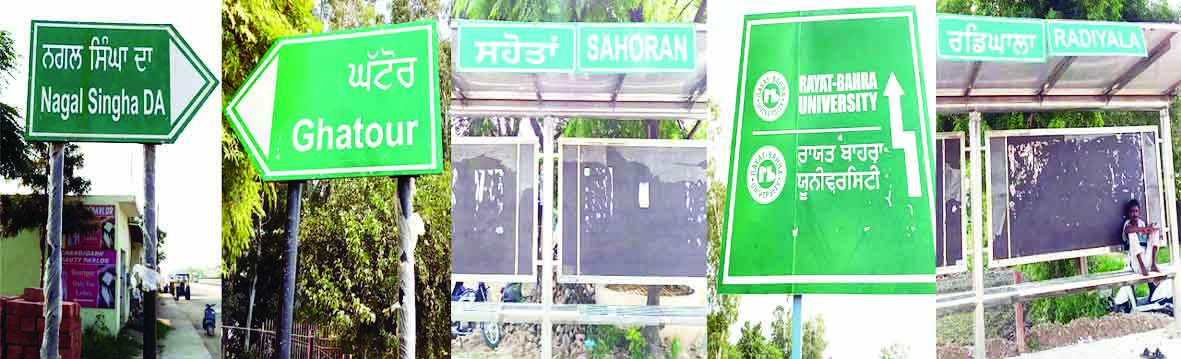 ਪਿੰਡਾਂ ਦੇ ਮੋੜਾਂ 'ਤੇ ਸਾਈਨ ਬੋਰਡ ਲਗਾਏ ਗਏ ਹਨ ਜਿਨ੍ਹਾਂ ਵਿਚ ਪੰਜਾਬੀ ਵਿਚ ਪਿੰਡਾਂ