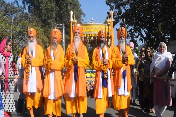 ਚੰਡੀਗੜ੍ਹ, 23 ਦਸੰਬਰ (ਸਰਬਜੀਤ ਢਿੱਲੋਂ) : ਦਸਮ ਪਾਤਿਸ਼ਾਹ ਸ੍ਰੀ ਗੁਰੂ ਗੋਬਿੰਦ ਸਿੰਘ ਜੀ ਦੇ 351ਵੇਂ ਪ੍ਰਕਾਸ਼ ਪੁਰਬ ਨੂੰ ਸਮਰਪਤ ਚੰਡੀਗੜ੍ਹ ਦੀ ਸਿੱਖ ਸੰਗਤ ਦੇ ਸਾਂਝੇ ਸਹਿਯੋਗ ਨਾਲ ਪ੍ਰਬੰਧਕ ਕਮੇਟੀ ਗੁਰਦੁਆਰਾ ਸੰਤਸਰ ਸਾਹਿਬ ਸੈਕਟਰ-38 ਵੈਸਟ ਵਲੋਂ ਕੇਂਦਰੀ ਤਾਲਮੇਲ ਕਮੇਟੀ ਸਮੂਹ ਗੁਰਦੁਆਰਾ ਸਾਹਿਬ ਅਤੇ ਸਿੱਖ ਸੰਸਥਾਵਾਂ ਵਲੋਂ ਵਿਸ਼ਾਲ ਨਗਰ ਕੀਰਤਨ ਸਜਾਇਆ ਗਿਆ। ਨਗਰ ਕੀਰਤਨ ਸਵੇਰੇ 11 ਵਜੇ ਪੰਜ ਪਿਆਰਿਆਂ ਦੀ ਅਗਵਾਈ ਵਿਚ ਸ਼ੁਰੂ ਹੋਇਆ। ਨਗਰ ਕੀਰਤਨ ਦਾ ਸ਼ਹਿਰ ਦਾ ਵੱਖ-ਵੱਖ ਸੈਕਟਰਾਂ-40, 41, 37, 23, 20, 21 ਅਤੇ ਟ੍ਰਿਬਿਊਨ ਚੌਕ ਤੋਂ ਲੰਘਦਾ ਹੋਇਆ ਦੇਰ ਸ਼ਾਮ ਗੁਰਦੁਆਰਾ ਸੈਕਟਰ-30 'ਚ ਸਮਾਪਤ ਹੋਇਆ।