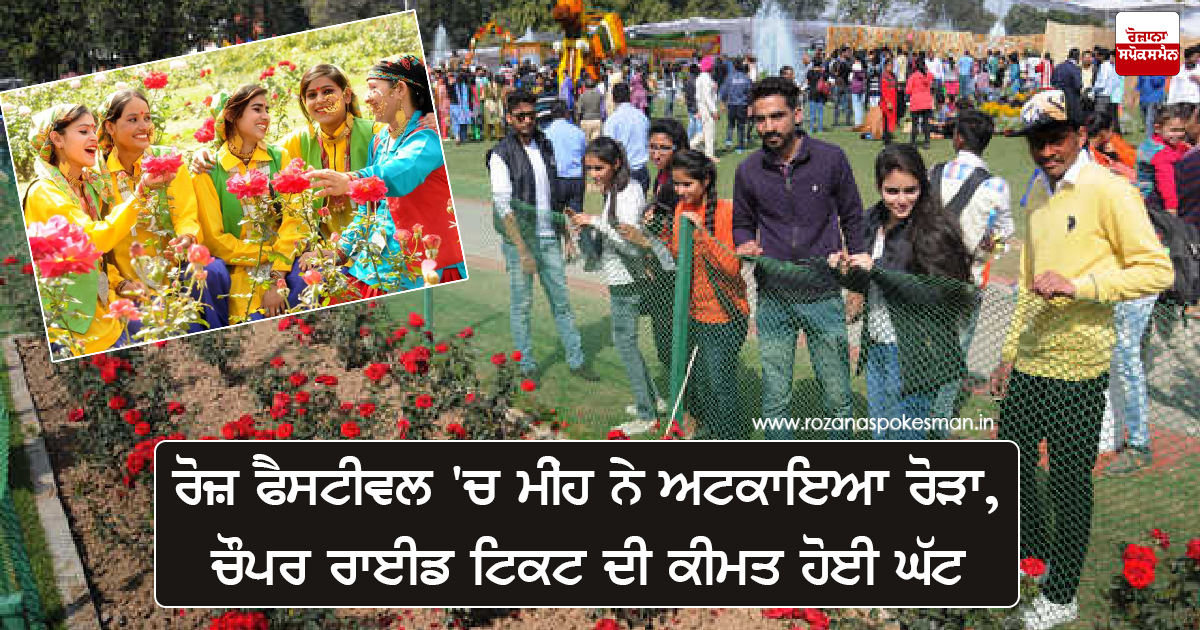 ਚੰਡੀਗੜ੍ਹ : ਤਿੰਨ ਦਿਨਾਂ ਰੋਜ਼ ਫੈਸਟੀਵਲ 'ਚ ਸ਼ਨੀਵਾਰ ਸਵੇਰੇ ਮੀਂਹ ਨੇ ਰੁਕਾਵਟ ਪਾ ਦਿੱਤੀ। ਚੌਪਰ ਰਾਈਡ 'ਤੇ ਵੀ ਇਸ ਦਾ ਅਸਰ ਦੇਖਣ ਨੂੰ ਮਿਲਿਆ ਅਤੇ 11 ਵਜੇ ਤੱਕ ਸਿਰਫ ਪੰਜ ਵਾਰ ਹੀ ਚੌਪਰ ਨੇ ਉਡ਼ਾਨ ਭਰੀ। ਧਿਆਨ ਯੋਗ ਹੈ ਕਿ ਕੰਪਨੀ ਨੇ ਹਾਲਾਂਕਿ ਚੌਪਰ ਰਾਈਡ ਲਈ ਟਿਕਟ ਦੀ ਕੀਮਤ 2380 ਤੈਅ ਕੀਤੀ ਹੋਈ ਹੈ, ਪਰ ਲੋਕਾਂ ਨੂੰ ਸਵੇਰੇ ਲੁਭਾਉਣ ਲਈ ਕੰਪਨੀ ਨੇ ਚੌਪਰ ਰਾਈਡ ਦੀ ਟਿਕਟ ਦੀ ਕੀਮਤ ਘਟਾ ਕੇ 1800 ਰੁਪਏ ਕਰ ਦਿੱਤੀ ਹੈ।