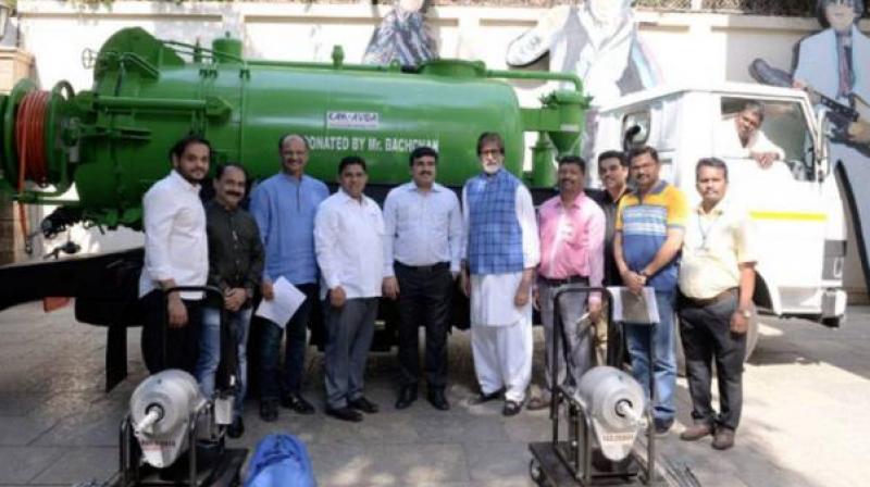 ਸਫਾਈ ਕਰਮਚਾਰੀਆਂ ਨੂੰ 25 ਛੋਟੀਆਂ ਵੱਖ-ਵੱਖ ਮਸ਼ੀਨਾਂ ਅਤੇ ਬੀ.ਐਮ.ਸੀ ਨੂੰ ਇਕ ਵੱਡੀ ਟਰੱਕ ਮਸ਼ੀਨ ਤੋਹਫੇ ਵਿਚ ਦਿਤੀ ਹੈ। 24 ਨਵੰਬਰ ਨੂੰ ਇਕ ਪੱਤਰ ਲਿਖ ਕੇ ਅਮਿਤਾਭ ਨੇ ਮੈਨੁਅਲ ਸਕੇਵੇਂਜਰਸ ਐਸੋਸਿਏਸ਼ਨ (ਐਮ.ਐਸ.ਏ) ਅਤੇ ਬ੍ਰਹਮੁੰਬਈ ਨਗਰ ਨਿਗਮ (ਬੀ.ਐਮ.ਸੀ) ਵਲੋਂ ਕਿਹਾ ਸੀ ਕਿ ਉਹ ਮੇਨਹੋਲ ਅਤੇ ਸੀਵਰੇਜ ਨਾਲੀਆਂ ਵਿਚ ਸਫਾਈ ਲਈ ਉਨ੍ਹਾਂ ਵਿਚ ਉਤਰਨ ਵਾਲੇ ਸਫਾਈ ਕਰਮਚਾਰੀਆਂ ਲਈ ਕੁਝ ਕਰਨਾ ਚਾਹੁੰਦੇ ਹਨ। ਉਨ੍ਹਾਂ ਨੇ ਕਿਹਾ ਮੇਰਾ ਯੋਗਦਾਨ ਸਫਾਈ ਕਰਮਚਾਰੀਆਂ ਨੂੰ ਇਸ ਅਣਮਨੁੱਖੀ ਕਾਰਜ ਨੂੰ ਕਰਨ ਤੋਂ ਰੋਕਣ ਅਤੇ ਉਨ੍ਹਾਂ ਨੂੰ ਸਮਾਜ ਵਿਚ ਸਨਮਾਨ ਅਤੇ ਮਾਣ ਦਵਾਉਣ ਲਈ ਹੈ।