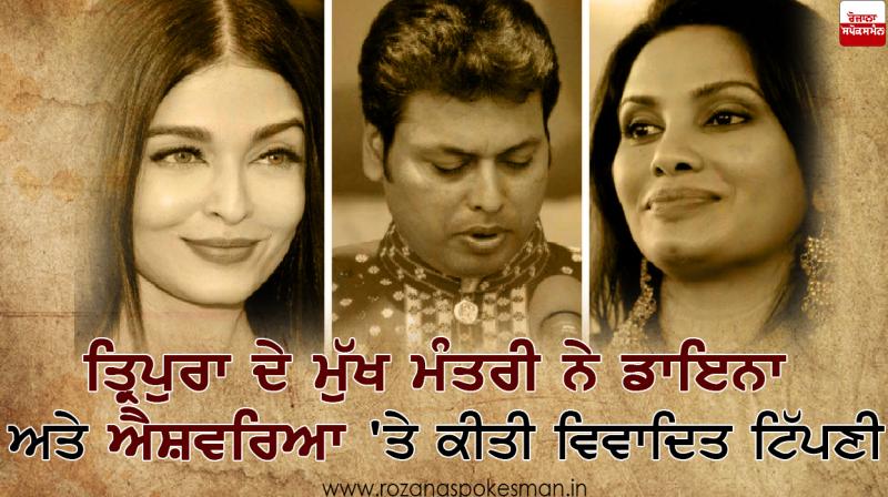 ਤ੍ਰਿਪੁਰਾ ਦੇ ਮੁੱਖ ਮੰਤਰੀ ਬਿਪਲਬ ਕੁਮਾਰ ਦੇਬ ਆਪਣੇ ਬਿਆਨਾਂ ਨੂੰ ਲੈ ਕੇ ਅਕਸਰ ਹੀ ਵਿਵਾਦਾਂ 'ਚ ਘਿਰੇ ਰਹਿੰਦੇ ਹਨ। ਇਸੇ ਦੇ ਚਲਦਿਆਂ ਉਹ ਇਕ ਵਾਰ ਫ਼ਿਰ ਤੋਂ ਵਿਵਾਦਾਂ 'ਚ ਆ ਗਏ ਹਨ । ਦਸਦੀਏ ਕਿ ਬਿਪਲਬ ਨੇ ਭਾਰਤ ਦੀ ਸਾਬਕਾ ਮਿਸ ਵਰਲਡ ਡਾਇਨਾ ਹੇਡਨ ਦੇ ਰੰਗ ਤੇ ਟਿੱਪਣੀ ਕਰਦਿਆਂ 21 ਸਾਲ ਪਹਿਲਾਂ ਡਾਇਨਾ ਹੇਡਨ ਨੂੰ ਮਿਸ ਵਰਲਡ ਦਾ ਖਿਤਾਬ ਦਿਤੇ ਜਾਣ 'ਤੇ ਸਵਾਲ ਉਠਾ ਦਿਤਾ। ਬਿਪਲਬ ਮੁਤਾਬਕ ਡਾਇਨਾ ਦੀ ਬਜਾਏ ਅਮਿਤਾਭ ਬੱਚਨ ਦੀ ਨੂੰਹ ਐਸ਼ਵਰਿਆ ਰਾਏ ਬੱਚਨ ਭਾਰੀ ਸੁੰਦਰਤਾ ਦੀ ਅਸਲ ਨੁਮਾਇੰਦਗੀ ਕਰਦੀ ਹੈ।