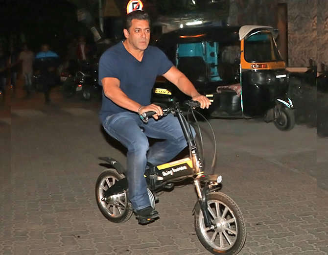 ਸਲਮਾਨ ਖਾਨ ਨੂੰ ਹਾਲ ਹੀ ਵਿੱਚ ਬਾਂਦਰਾ ਸਟਰੀਟ ਉੱਤੇ ਸ਼ਾਮ ਦੇ ਸਮੇਂ ਬਰਾਂਡ ਨਿਊ ਈ - ਸਾਈਕਲ ਚਲਾਉਂਦੇ ਹੋਏ ਕਲਿਕ ਕੀਤਾ ਗਿਆ।