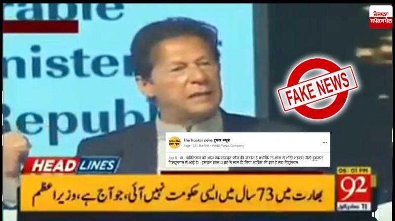 ਰੋਜ਼ਾਨਾ ਸਪੋਕਸਮੈਨ (ਮੋਹਾਲੀ ਟੀਮ) - ਸੋਸ਼ਲ ਮੀਡਿਆ 'ਤੇ ਇੱਕ ਵੀਡੀਓ ਕਲਿੱਪ ਵਾਇਰਲ ਹੋ ਰਿਹਾ ਹੈ ਜਿਸ ਦੇ ਵਿਚ ਪਾਕਿਸਤਾਨ ਦੇ ਪ੍ਰਧਾਨ ਮੰਤਰੀ ਇਮਰਾਨ ਖਾਨ ਨੂੰ ਮੋਦੀ ਸਰਕਾਰ ਬਾਰੇ ਬੋਲਦੇ ਸੁਣਿਆ ਜਾ ਸਕਦਾ ਹੈ। ਦਾਅਵਾ ਕੀਤਾ ਜਾ ਰਿਹਾ ਹੈ ਕਿ ਇਮਰਾਨ ਖਾਨ ਨੇ ਮੋਦੀ ਸਰਕਾਰ ਦੀ ਤਰੀਫ਼ ਕੀਤੀ ਹੈ।