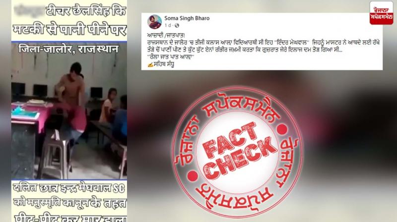 ਫੇਸਬੁੱਕ ਯੂਜ਼ਰ "Soma Singh Bharo" ਨੇ ਵਾਇਰਲ ਵੀਡੀਓ ਸ਼ੇਅਰ ਕਰਦਿਆਂ ਲਿਖਿਆ, "ਆਜ਼ਾਦੀ /ਜਾਤਪਾਤ! ਰਾਜਸਥਾਨ ਦੇ ਜਾਲੋਰ 'ਚ ਤੀਜੀ ਕਲਾਸ ਆਲ਼ਾ ਵਿਦਿਆਰਥੀ ਸੀ ਇਹ ''ਇੰਦਰ ਮੇਘਵਾਲ'' ਜਿਹਨੂੰ ਮਾਸਟਰ ਨੇ ਆਬਦੇ ਲਈ ਰੱਖੇ ਤੌੜੇ ਚੋਂ ਪਾਣੀਂ ਪੀਣ ਤੇ ਕੁੱਟ ਕੁੱਟ ਏਨਾਂ ਗੰਭੀਰ ਜਖ਼ਮੀ ਕਰਤਾ ਕਿ ਗੁਜ਼ਰਾਤ ਜੇਰੇ ਇਲਾਜ ਦਮ ਤੋੜ ਗਿਆ ਸੀ... ''ਰੌਲਾ ਜਾਤ ਪਾਤ ਆਲ਼ਾ'' ✍️ਸਹਿਬ ਸੰਧੂ"