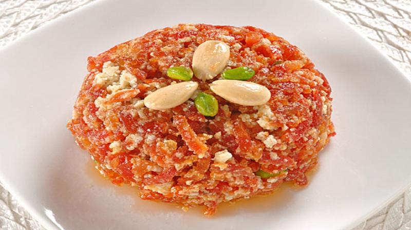 ਗਾਜਰ ਹਲਵੇ ਨੂੰ ਬਰੀਕ ਕਟੇ ਹੋਏ ਬਦਾਮ ਅਤੇ ਕਾਜੂ ਨਾਲ ਸਜਾਓ। ਸੰਤਰੀ ਗਾਜਰ ਦਾ ਸਵਾਦਿਸ਼ਟ ਹਲਵਾ ਅਸਾਨ ਅਤੇ ਜਲਦੀ ਨਾਲ ਬਣ ਕੇ ਤਿਆਰ ਹੈ। ਇਸ ਹਲਵੇ ਨੂੰ ਠੰਡਾ ਜਾਂ ਗਰਮ ਜਿਵੇਂ ਵੀ ਚਾਹੋ ਸਰਵ ਕਰੋ। ਹਲਵੇ ਨੂੰ ਫਰਿਜ ਵਿਚ ਰੱਖ ਕੇ 4 - 5 ਦਿਨ ਤੱਕ ਖਾਧਾ ਜਾ ਸਕਦਾ ਹੈ।