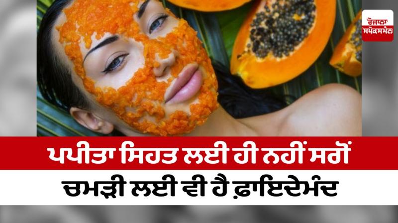 ਚਿਹਰੇ ਲਈ ਪਪੀਤੇ ਦੇ ਬਹੁਤ ਸਾਰੇ ਫ਼ਾਇਦੇ ਹਨ। ਪਪੀਤਾ ਚਮੜੀ ਨੂੰ ਅੰਦਰੋਂ ਹਾਈਡ੍ਰੇਟ ਕਰਦਾ ਹੈ। ਇਸ ਦੀ ਬਣਤਰ ਨੂੰ ਠੀਕ ਰਖਦਾ ਹੈ। ਇਹ ਪਿਗਮੈਂਟੇਸ਼ਨ ਨੂੰ ਘੱਟ ਕਰਨ ਵਿਚ ਵੀ ਮਦਦਗਾਰ ਸਾਬਤ ਹੁੰਦਾ ਹੈ। ਪਪੀਤਾ ਸੈੱਲਾਂ ਨੂੰ ਅੰਦਰੋਂ ਹਾਈਡ੍ਰੇਟ ਕਰਦਾ ਹੈ ਅਤੇ ਚਮੜੀ ਦੀ ਚਮਕ ਵਧਾਉਣ ਦਾ ਕੰਮ ਕਰਦਾ ਹੈ।