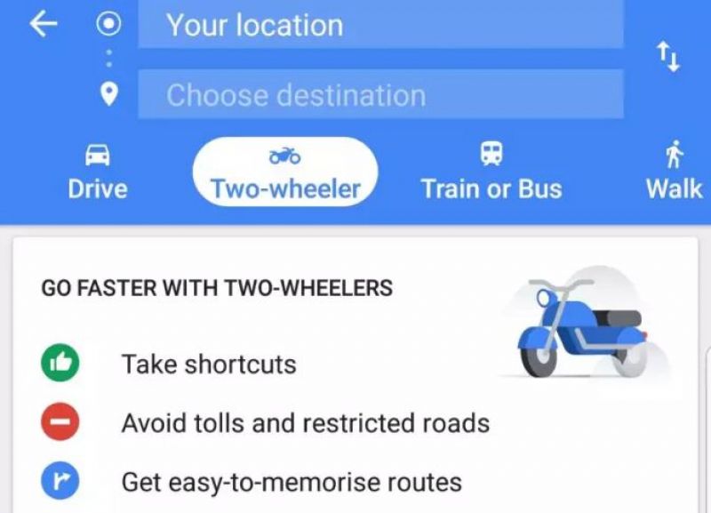 1. ਟੂ-ਵ੍ਹੀਲਰ ਮੋਡGoogle maps