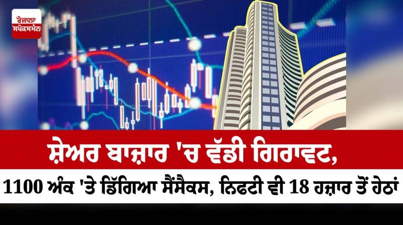 ਮੁੰਬਈ: ਭਾਰਤੀ ਸ਼ੇਅਰ ਬਾਜ਼ਾਰ ਲਗਾਤਾਰ ਪੰਜ ਸੈਸ਼ਨਾਂ 'ਚ ਤੇਜ਼ੀ ਦੇ ਬਾਅਦ ਬੁੱਧਵਾਰ ਸਵੇਰੇ ਵੱਡੀ ਗਿਰਾਵਟ 'ਤੇ ਖੁੱਲ੍ਹਿਆ। ਅਮਰੀਕੀ ਸ਼ੇਅਰ ਬਾਜ਼ਾਰ 'ਚ ਗਿਰਾਵਟ ਦਾ ਅਸਰ ਘਰੇਲੂ ਨਿਵੇਸ਼ਕਾਂ ਦੀ ਭਾਵਨਾ 'ਤੇ ਵੀ ਦੇਖਣ ਨੂੰ ਮਿਲਿਆ ਅਤੇ ਸੈਂਸੈਕਸ 1100 ਅੰਕਾਂ ਤੋਂ ਜ਼ਿਆਦਾ ਦੀ ਗਿਰਾਵਟ ਨਾਲ 60 ਹਜ਼ਾਰ ਤੋਂ ਹੇਠਾਂ ਆ ਗਿਆ।