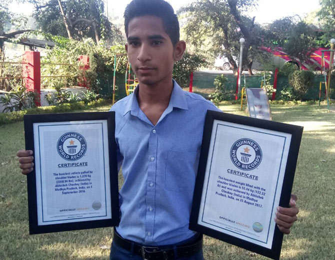 ਅਭੀਸ਼ੇਕ ਨੇ ਕੁੱਝ ਸਮਾਂ ਪਹਿਲਾਂ ਯੂਨੀਵਰਸਿਟੀ ਵਿੱਚ ਮੋਢਿਆ ਨਾਲ 55.44 ਕਿੱਲੋ ਭਾਰ ਚੁੱਕਣ ਦਾ ਕੰਮ ਮਾਹਿਰਾਂ ਦੀ ਦੇਖਭਾਲ ਵਿੱਚ ਕੀਤਾ ਸੀ। ਇਸਦੀ ਜਾਂਚ ਕਰਨ ਦੇ ਬਾਅਦ ਹੀ ਟੀਮ ਨੇ ਸਰਟੀਫਿਕੇਟ ਦਿੱਤਾ ਹੈ।