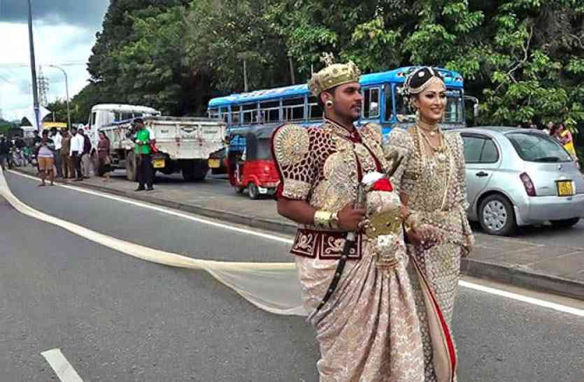 ਸ਼੍ਰੀਲੰਕਾ ਵਿੱਚ ਕਿਸੇ ਦੁਲਹਨ ਦੁਆਰਾ ਪਾਈ ਗਈ ਇਹ ਹੁਣ ਤੱਕ ਦੀ ਸਭ ਤੋਂ ਲੰਮੀ ਸਾੜ੍ਹੀ ਹੈ। 21 ਸਤੰਬਰ ਨੂੰ ਹੋਏ ਇਸ ਵਿਆਹ ਲਈ ਕੈਂਡੀ ਸ਼ਹਿਰ ਦੀ ਸੜਕ ਉੱਤੇ ਸਾੜ੍ਹੀ ਨੂੰ ਸੰਭਾਲਣ ਲਈ ਬੱਚਿਆਂ ਨੂੰ ਇੱਕ ਲਾਈਨ ਵਿੱਚ ਖੜਾ ਕੀਤਾ ਗਿਆ। ਇੰਨਾ ਹੀ ਨਹੀਂ, ਵਿਆਹ ਵਿੱਚ 100 ਹੋਰ ਸਕੂਲੀ ਵਿਦਿਆਰਥਣਾਂ ਨੂੰ ਮਹਿਮਾਨਾਂ ਨੂੰ ਫੁੱਲ ਦੇਣ ਦਾ ਕੰਮ ਸੌਪਿਆ ਗਿਆ। ਪਰ ਇਹ ਤਿਆਰੀ ਪ੍ਰਸ਼ਾਸਨ ਦੀ ਨਜ਼ਰ ਵਿੱਚ ਆ ਗਈ। ਸ਼੍ਰੀਲੰਕਾ ਦੇ ਕਾਨੂੰਨ ਵਿੱਚ ਇਸ ਤਰ੍ਹਾਂ ਦੇ ਪ੍ਰੋਗਰਾਮਾਂ ਵਿੱਚ ਬੱਚਿਆਂ ਦਾ ਇਸਤੇਮਾਲ ਕਾਨੂੰਨ ਦੀ ਉਲੰਘਣਾ ਹੈ। ਜੇਕਰ ਨਵਾਂ ਵਿਆਇਆ ਜੋੜਾ ਦੋਸ਼ੀ ਪਾਇਆ ਜਾਂਦਾ ਹੈ, ਤਾਂ 10 ਸਾਲ ਦੀ ਜੇਲ੍ਹ ਵੀ ਹੋ ਸਕਦੀ ਹੈ।