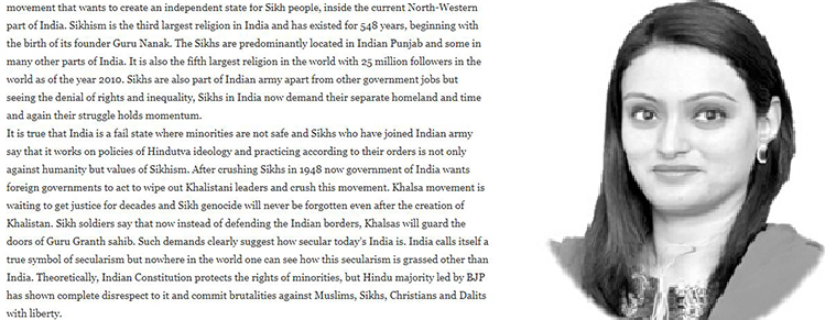 ਗੁਆਂਢੀ ਮੁਲਕ ਪਾਕਿਸਤਾਨ ਨਾਲ ਭਾਰਤ ਦੇ ਸੰਬੰਧ ਹਮੇਸ਼ਾ ਇੱਕ ਸੁਪਨਾ ਹੀ ਬਣ ਕੇ ਰਹੇ ਹਨ ਜਿਹੜਾ ਕਦੀ ਸਾਕਾਰ ਹੁੰਦਾ ਨਜ਼ਰ ਵੀ ਨਹੀਂ ਆਇਆ। ਪਾਕਿਸਤਾਨ ਦੇ ਅਖ਼ਬਾਰ ਪਾਕਿਸਤਾਨ ਆਬਜ਼ਰਵਰ ਵਿੱਚ ਰੀਮਾ ਸ਼ੌਕਤ ਦਾ ਲੇਖ ਛਪਿਆ ਹੈ ਜਿਸ ਵਿੱਚ ਉਹਨਾਂ ਸਿੱਖ, ਖਾਲਿਸਤਾਨ ਅੰਦੋਲਨ ਅਤੇ ਕਈ ਹੋਰ ਪਹਿਲੂਆਂ 'ਤੇ ਵਿਚਾਰ ਰੱਖੇ ਹਨ।