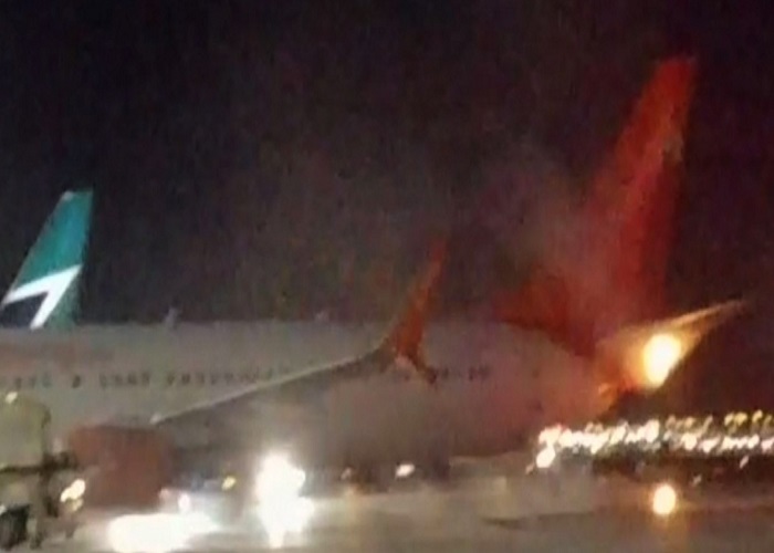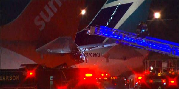 ਟੋਰਾਂਟੋ: ਕੈਨੇਡਾ ਦੇ ਟੋਰਾਂਟੋ ਦੇ ਪੀਅਰਸਨ ਹਵਾਈ ਅੱਡੇ 'ਤੇ ਦੋ ਜਹਾਜ਼ਾਂ ਦੇ ਟਕਰਾ ਜਾਣ ਨਾਲ ਇਕ ਜਹਾਜ਼ 'ਚ ਅੱਗ ਲੱਗ ਗਈ। ਇਸ ਮਗਰੋਂ ਉਸ 'ਚ ਸਵਾਰ ਘੱਟੋ-ਘੱਟ 10 ਲੋਕਾਂ ਨੂੰ ਸੁਰੱਖਿਅਤ ਬਾਹਰ ਕੱਢਿਆ ਗਿਆ। ਗ੍ਰੇਟਰ ਟੋਰਾਂਟੋ ਹਵਾਈ ਅੱਡੇ ਦੇ ਅਧਿਕਾਰੀਆਂ ਨੇ ਦੱਸਿਆ ਕਿ ਸਥਾਨਕ ਸਮੇਂ ਮੁਤਾਬਕ ਸ਼ਾਮ 6.19 ਵਜੇ ਸਨਵਿੰਗ ਏਅਰਲਾਇੰਸ ਅਤੇ ਵੈੱਸਟਜੈੱਟ ਏਅਰਲਾਇੰਸ ਦੇ ਜਹਾਜ਼ ਆਪਸ 'ਚ ਟਕਰਾ ਗਏ। ਇਸਦੇ ਬਾਅਦ ਅੱਗ ਬੁਝਾਊ ਵਿਭਾਗ ਅਤੇ ਐਮਰਜੈਂਸੀ ਸੇਵਾਵਾਂ ਦੀ ਸਹਾਇਤਾ ਲਈ ਗਈ।